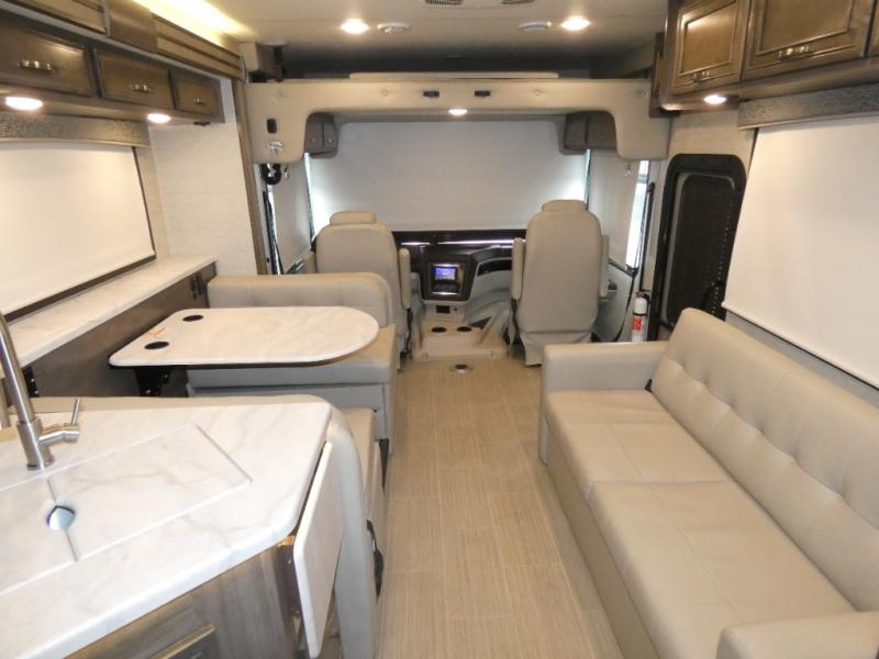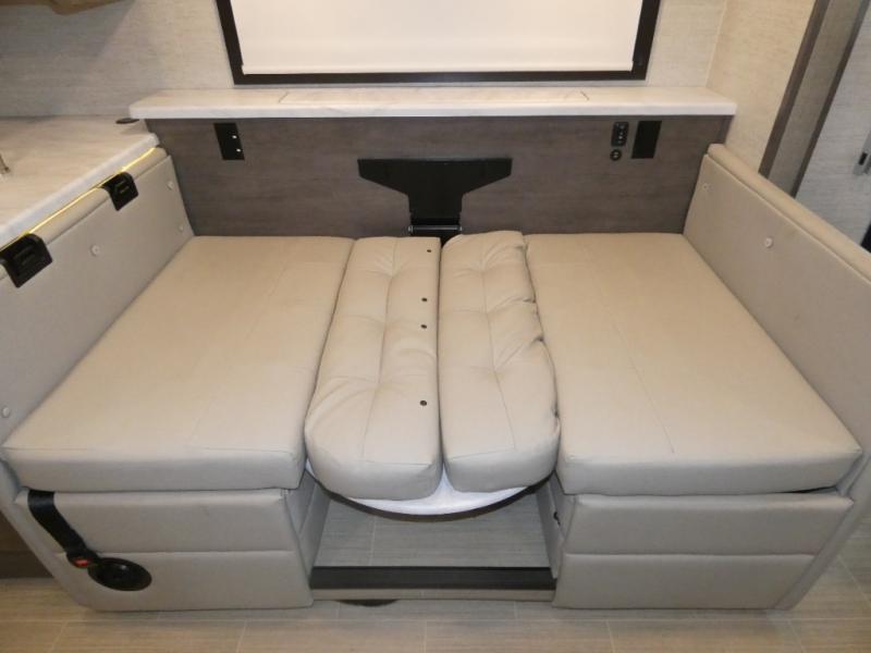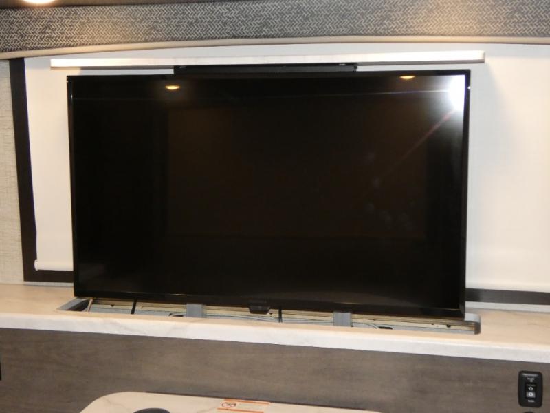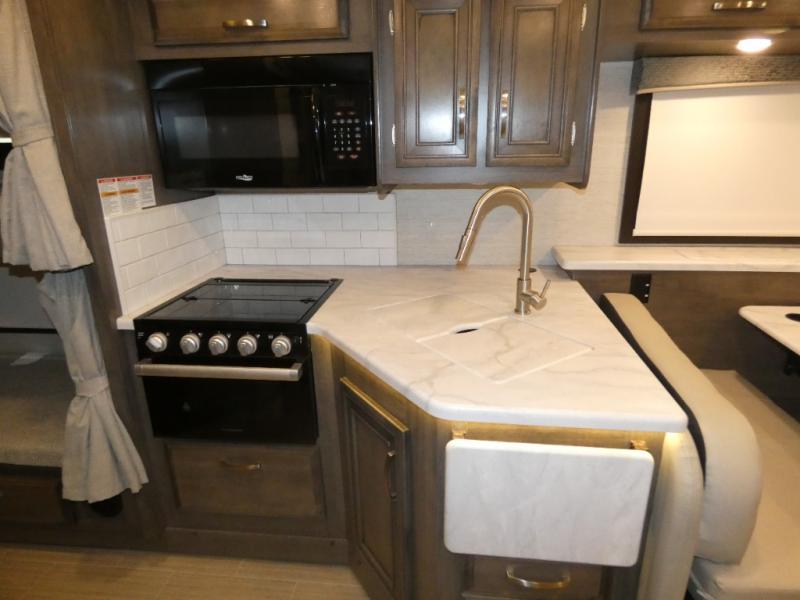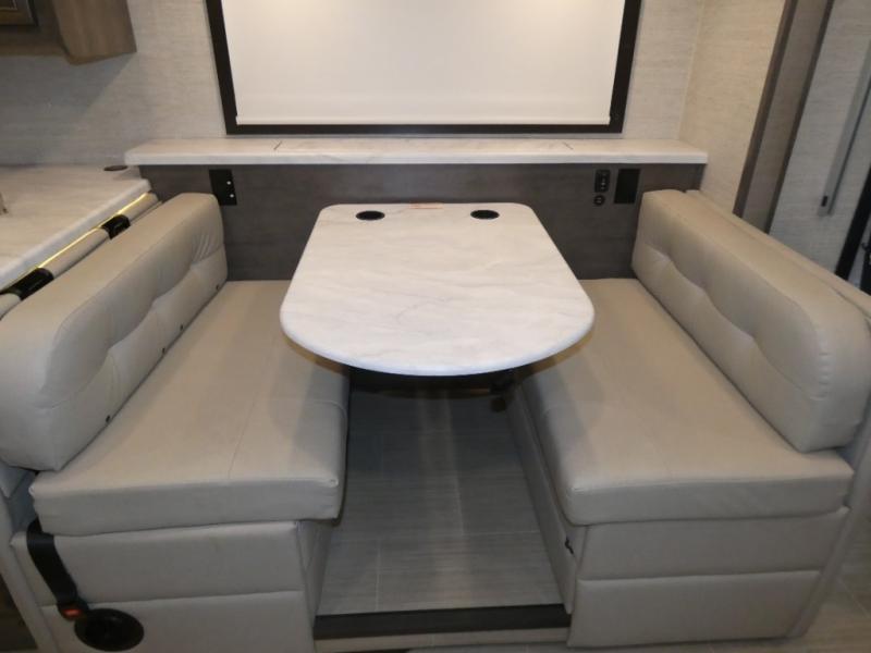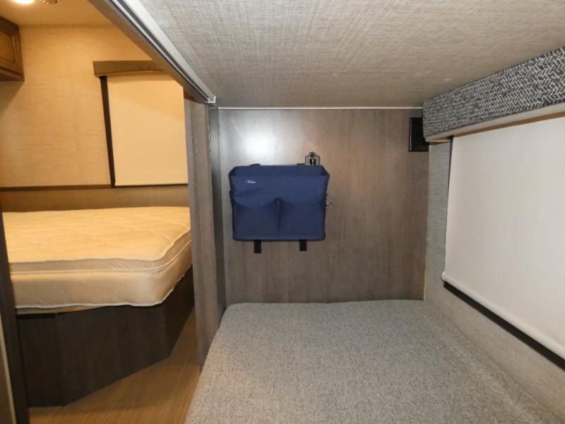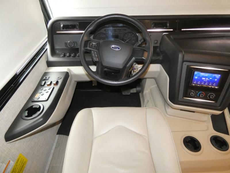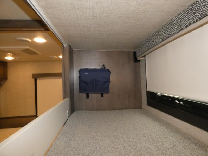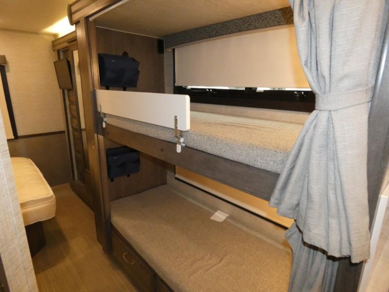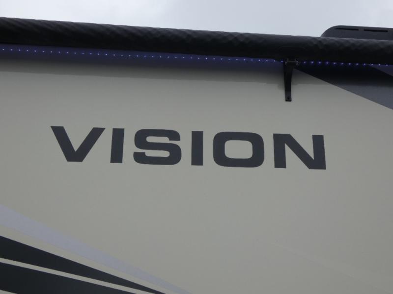 Enjoy a full weekend of excellent amenities in this Vision Class A gas motorhome! There is enough sleeping space for the whole crew with a set of 28" x 72" bunk beds, an RV queen bed, booth dinette, 68" jack-knife sofa, and drop-down bunk above the cab too. The dual-entry bathroom can be accessed from the main living area as well as the rear bedroom which adds more convenience. There is a Sony infotainment center with Apple CarPlay and Android Auto in the cockpit to help you as you drive, and you'll also find the backup and sideview cameras to be useful when you're parking. A 23' electric awning will protect you while you're outside watching the exterior LED HD Smart TV.
