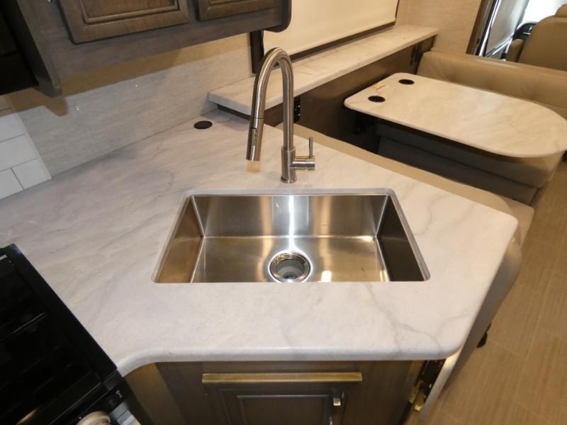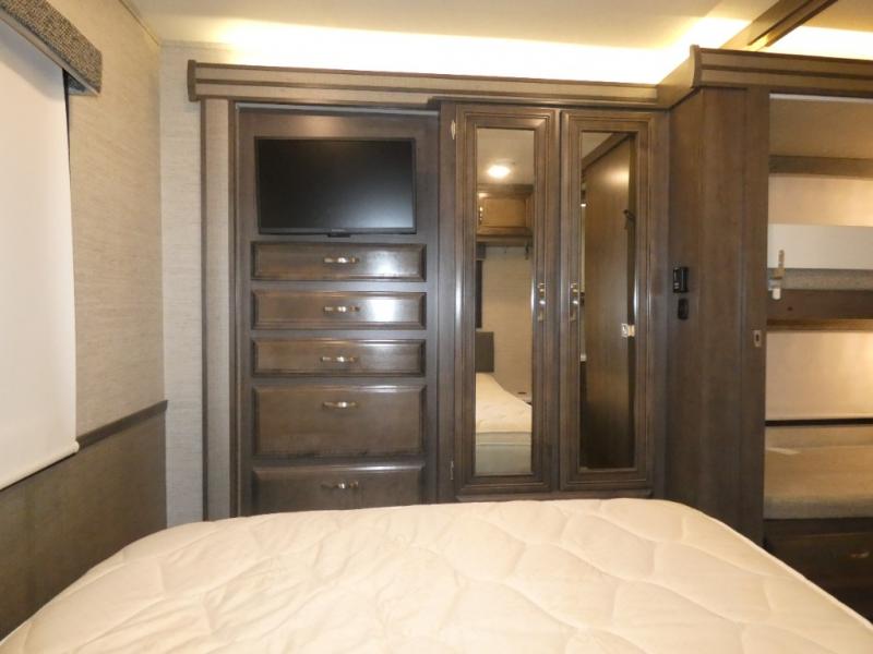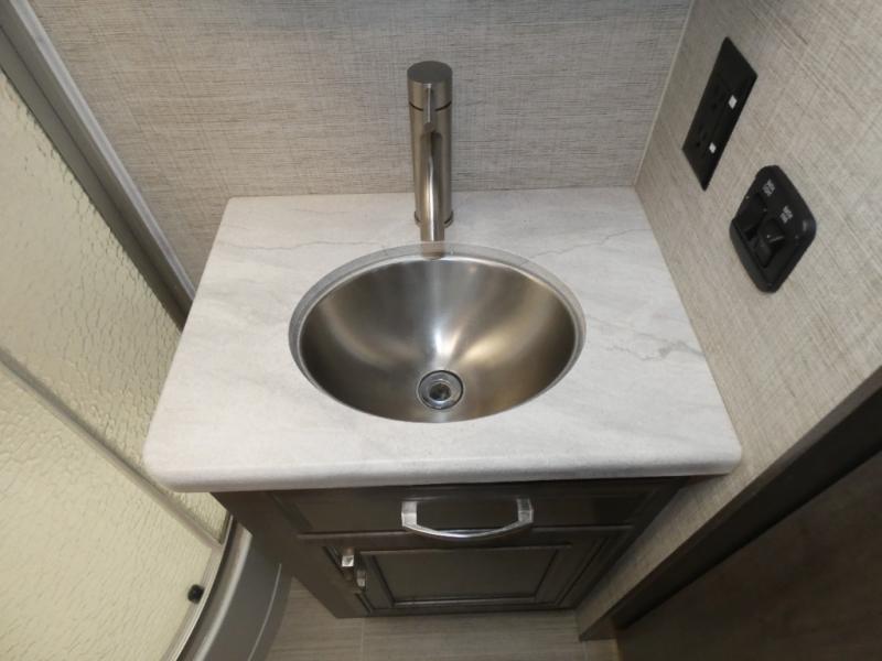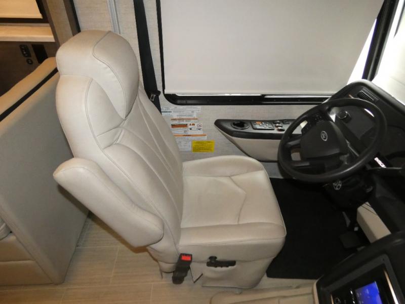 Cruise to your next luxurious camping location in any Entegra Coach Vision Class A gas motorhome! With its high-class features, the Vision makes it quite easy to create memorable and lavish getaways. The exterior comes equipped with an electric patio awning with LED lights, an outside shower, an exterior utility center, slide out awnings, lockable pass-through storage compartments, an exterior entertainment center with speakers, an LED HD Smart TV, and single-disc DVD/FM radio, and a 190W solar panel with dual controller. The Onan Marquis Gold Genset generator will provide extra convenience while the water filtration system keeps your water pure and tasting great. The E-Z DRIVE ride and handling package is another feature that is sure to spark your interest as it allows you to drive without much effort. This package includes a computer-balanced driveshaft, jounce bumpers, heavy-duty front and rear stabilizer bars, and SACHS shocks.