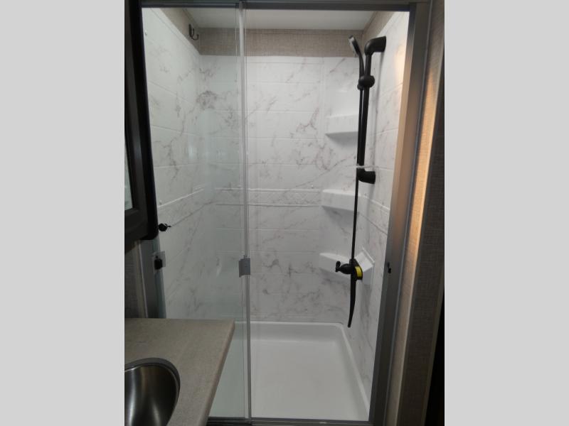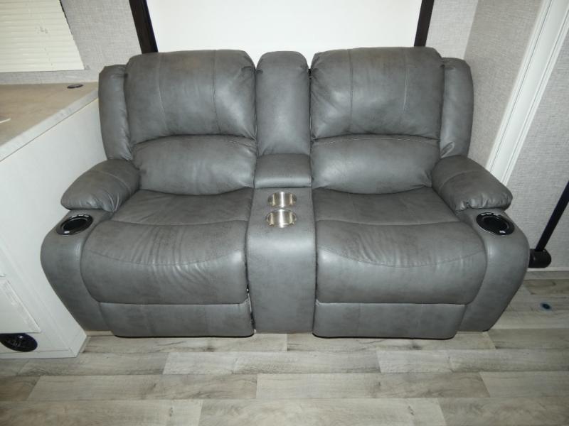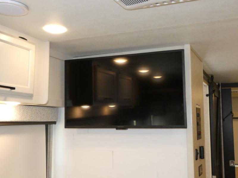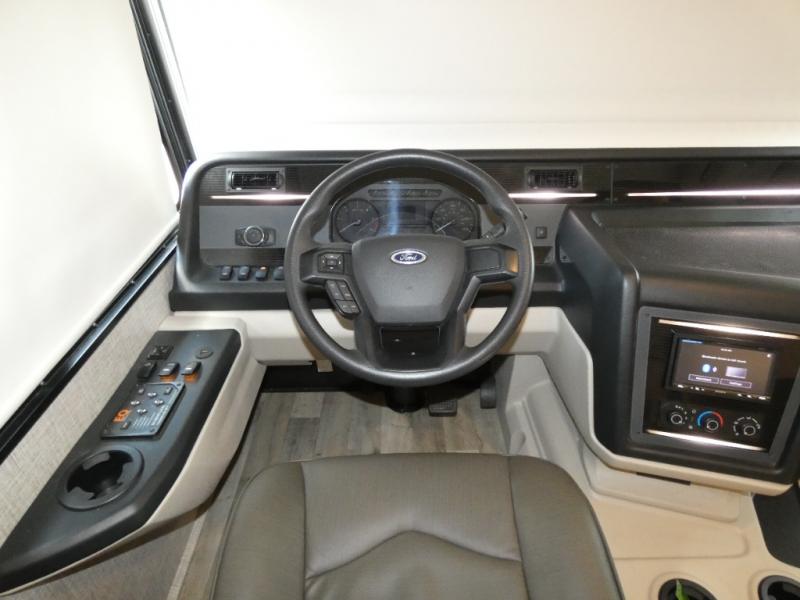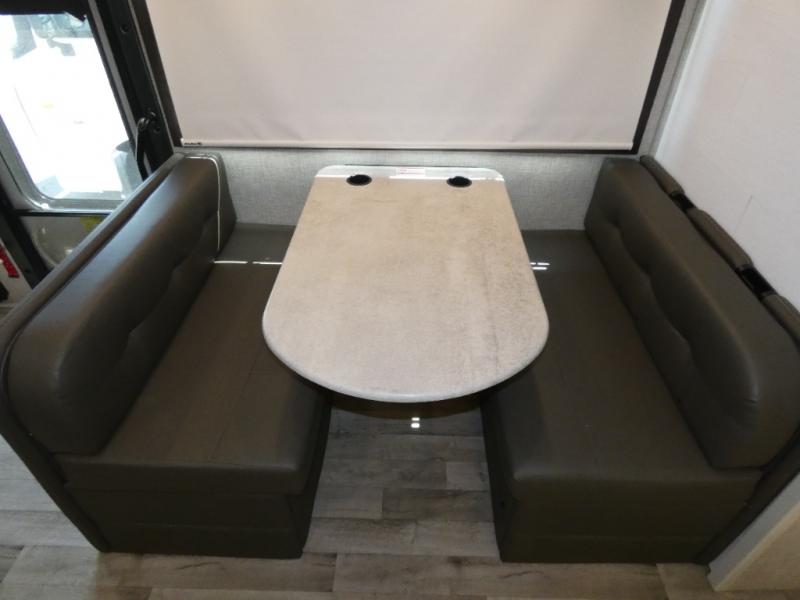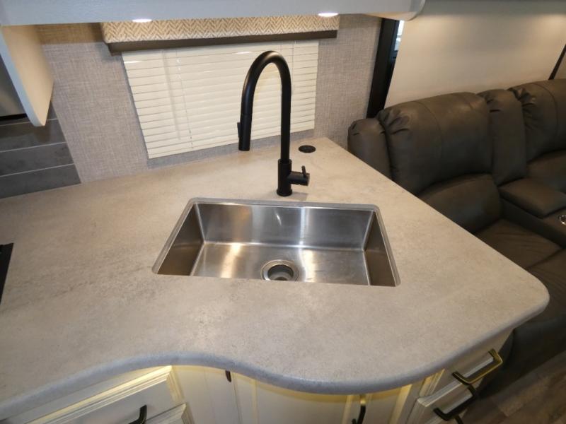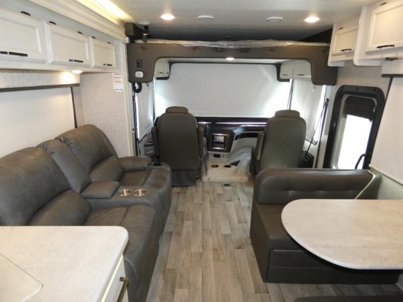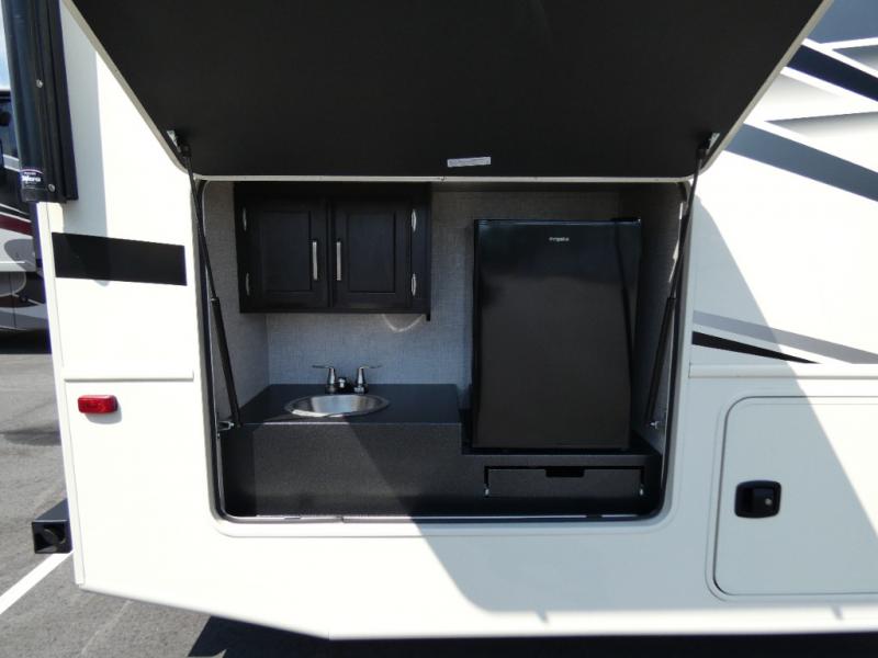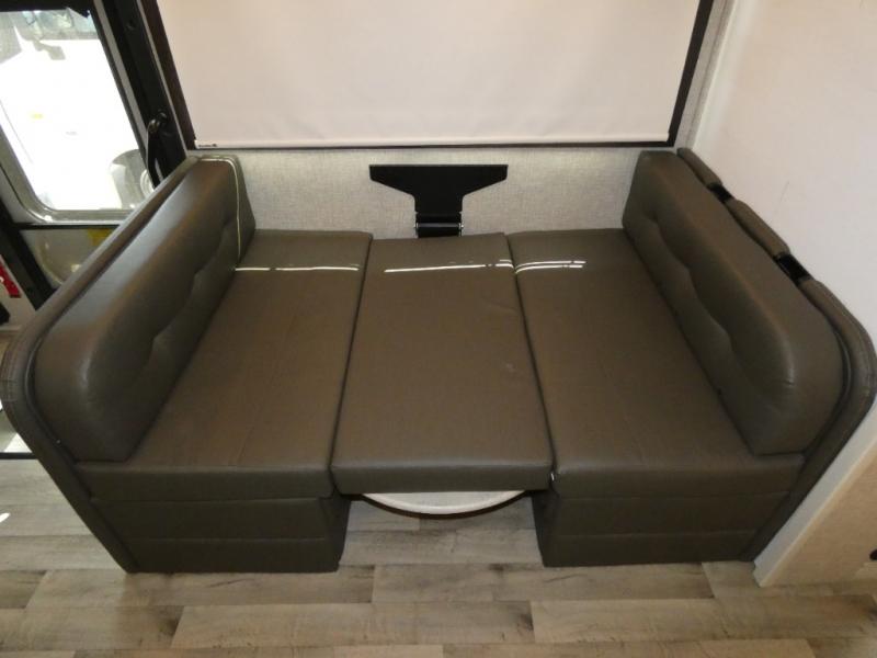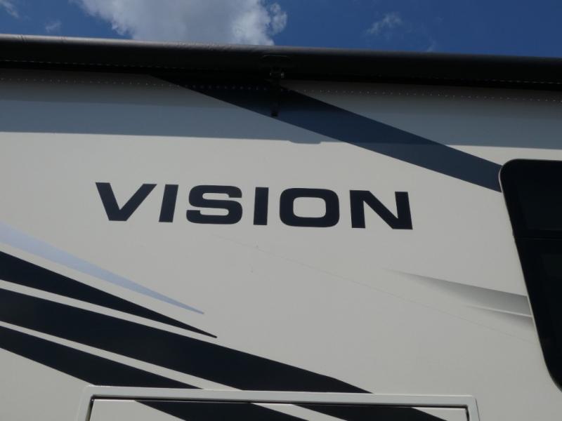 This Vision Class A gas motorhome has excellent interior living space with a full-wall slide! You'll fully enjoy the kitchen and the amenities it provides, like a residential-size microwave, an 8-cubic foot refrigerator, Furrion all-in-one cooktop and oven, and pantry. The theater seating and booth dinette offer you lounging space after a full day of traveling, and the 39" LED HD Smart TV offers you some entertainment when you don't want to be active anymore. The exterior portion of this coach is also excellently appointed with an outdoor kitchen, exterior entertainment center with LED HD Smart TV, radio, and speakers, and a 23' electric awning with LED lights. You also have great choices of options for this coach with the optional 12-cubic foot refrigerator, theater sofa, or drop-down overhead cab bunk.