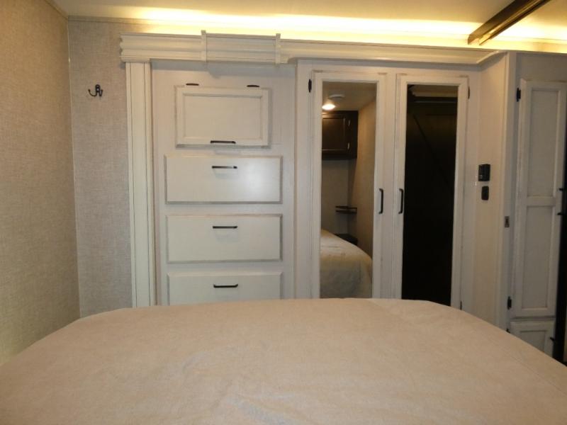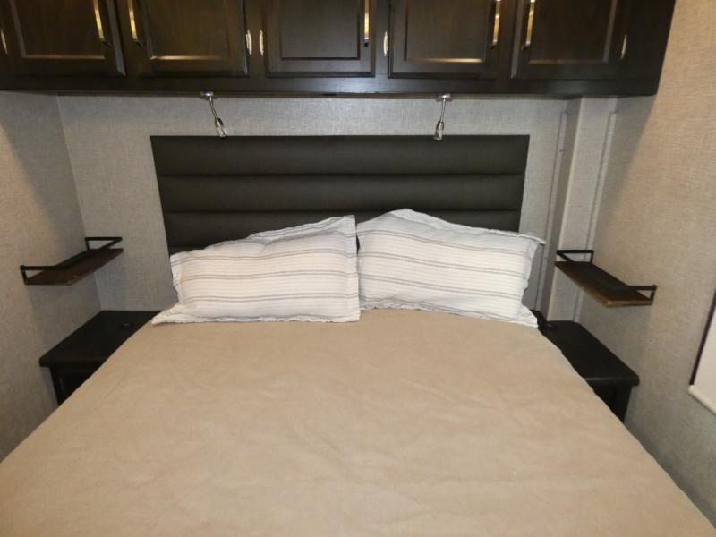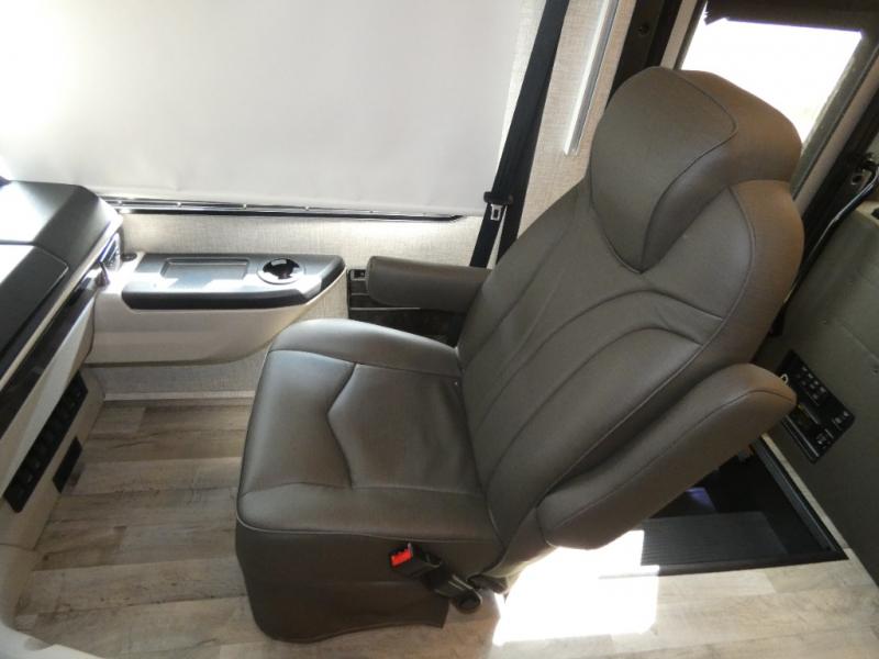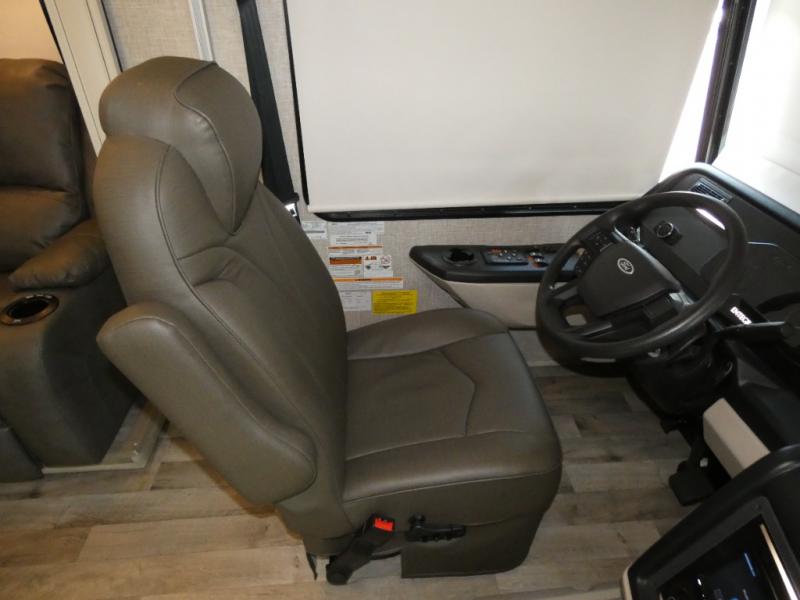 Cruise to your next luxurious camping location in any Entegra Coach Vision Class A gas motorhome! With its high-class features, the Vision makes it quite easy to create memorable and lavish getaways. The exterior comes equipped with an electric patio awning with LED lights, an outside shower, an exterior utility center, slide out awnings, lockable pass-through storage compartments, an exterior entertainment center with speakers, an LED HD Smart TV, and single-disc DVD/FM radio, and a 190W solar panel with dual controller. The Onan Marquis Gold Genset generator will provide extra convenience while the water filtration system keeps your water pure and tasting great. The E-Z DRIVE ride and handling package is another feature that is sure to spark your interest as it allows you to drive without much effort. This package includes a computer-balanced driveshaft, jounce bumpers, heavy-duty front and rear stabilizer bars, and SACHS shocks.