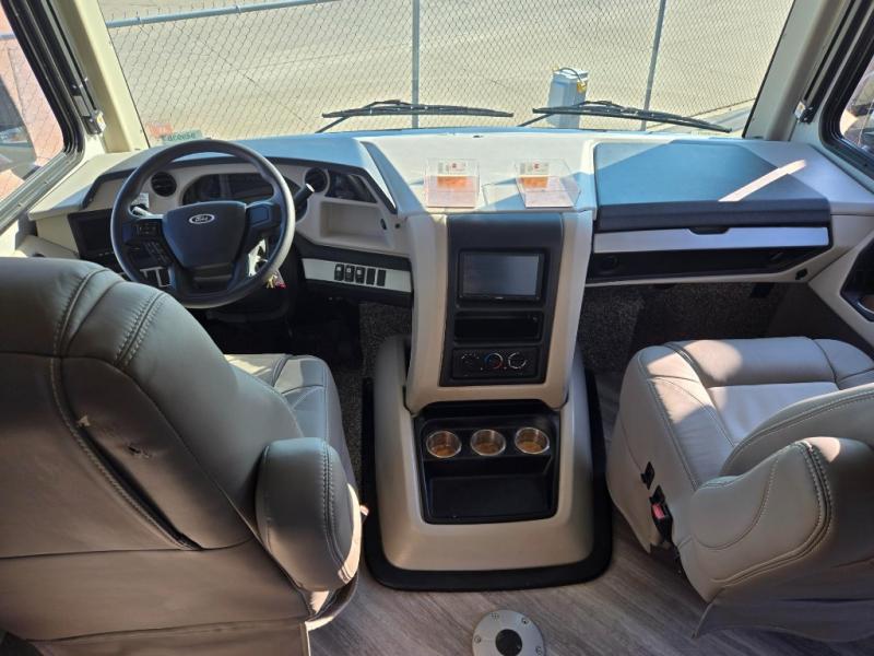 The Fleetwood Fortis Class A gas motorhome is a powerhouse of luxury and convenience, and it also is quite literally a powerhouse with its Ford 7.3L V8 350HP engine with 468 LB/FT of torque. The construction includes a Dryseal edge coating for all ceilings, walls, and floor, and the Powerlock System 2 has interlocking walls to the roof for stability. Automatic hydraulic leveling jacks make the set-up process easier, and the cab has excellent features, like a 9" stereo with AM/FM/Bluetooth, backup camera, reclining/swivel cab seats, driver/passenger center table, and an automotive-style dash with dual monitors and workstation. You will find vinyl tile flooring all throughout the interior, as well as full-extension drawer guides with latches, coordinating window treatments, and energy-efficient LED flush-mount ceiling lighting.