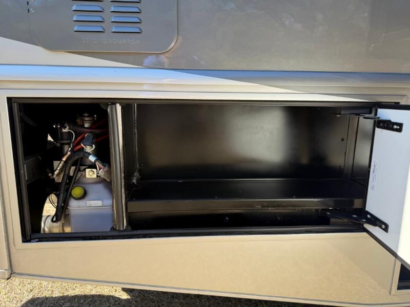 With any Pace Arrow Class A diesel motorhome, the exterior provides the Freedom Sport Foundation, a powerlock system, interlocking floors, walls and roof, auto leveling jacks for easy setup, a full-pass through storage with lighting for easy access day or night, and dual, ducted 15,000 BTU roof ACs with chill grill and rear heat pump for maximum comfort. Enjoy safer, smoother stops with the BrakeSync supplemental braking system, the ability to tow a commuter vehicle, a trailer with an off-road toy or a luggage cargo rack with the 10,000 lb. rated tow hitch, and the chassis integrated air supply for your tow vehicle brake system. The interior offers an electronic information center, composite tile flooring, full kitchen and bath amenities, plus so much more!