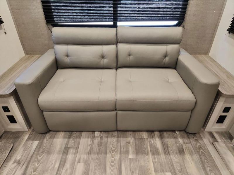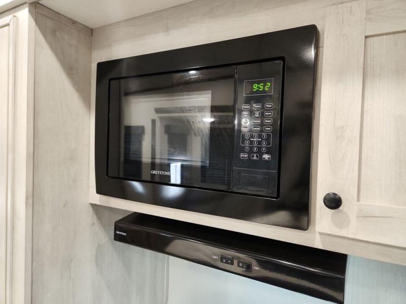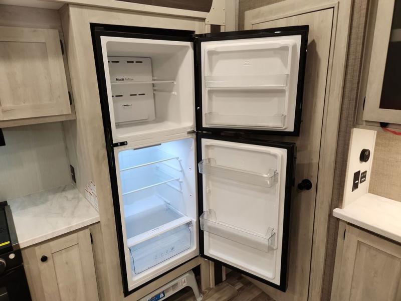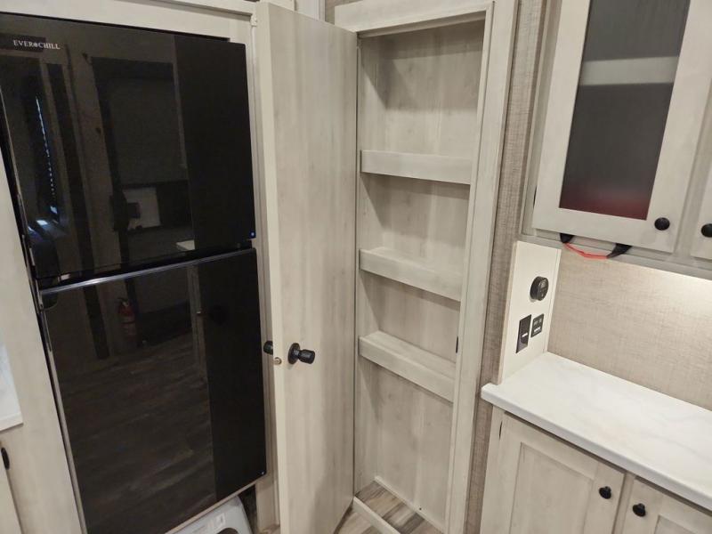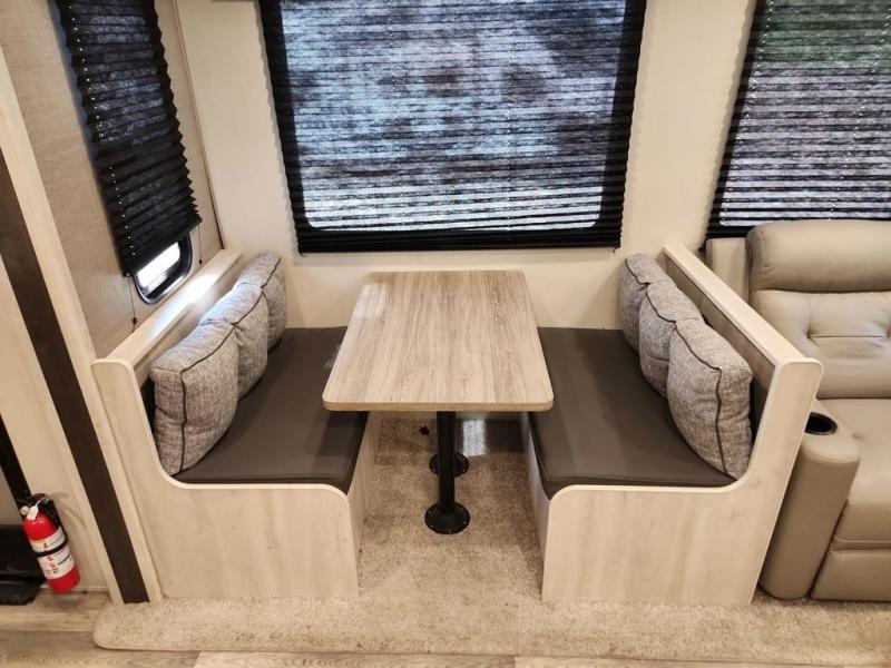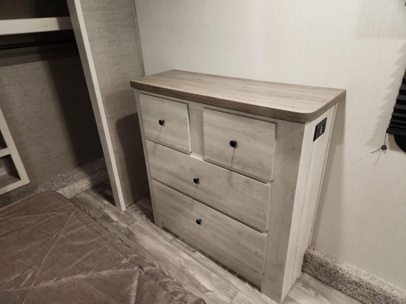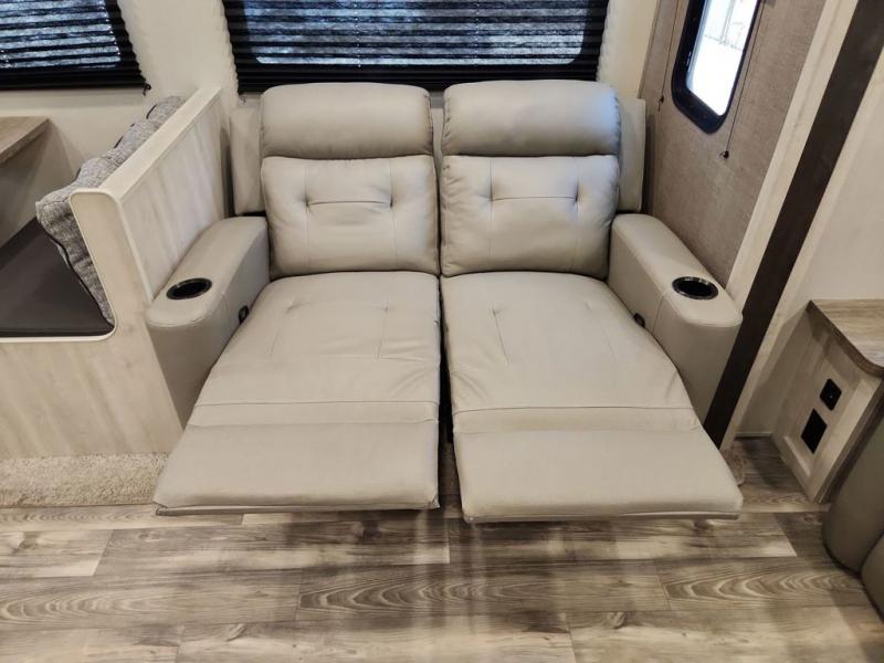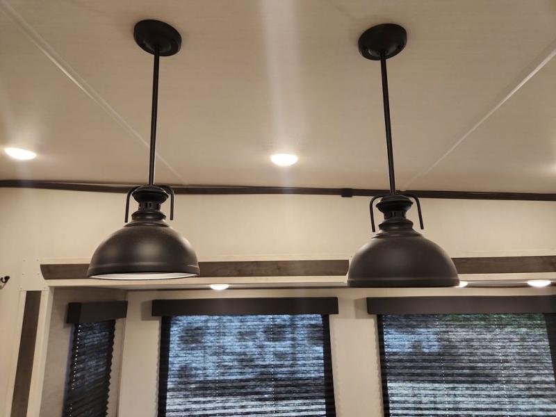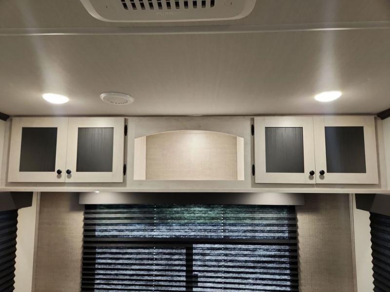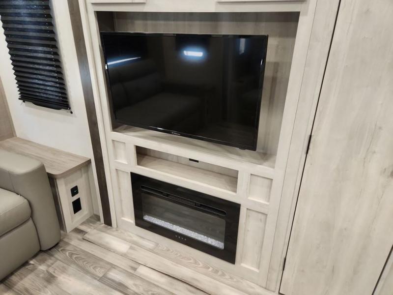 Cardinal RED is a new fifth wheel offering from Forest River. With flexible family-friendly designs, these models are designed to make camping affordable and accessible to everyone. A vacuum bonded and welded aluminum structure underlies the laminated sidewalls, while the underbelly features armor ABS panels and forced air heat to all holding tanks to prevent freezing. Inside will be comfortable as well with a high efficiency 35,000 BTU furnace, dual 13,500 BTU air conditioners, and an electric fireplace with thermostat control and remote.