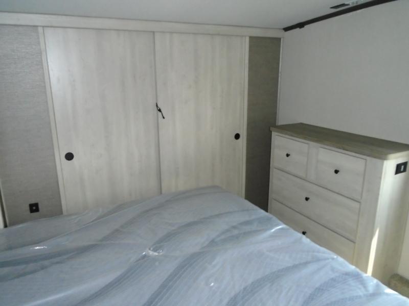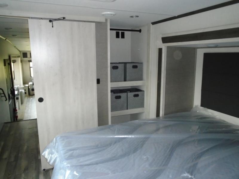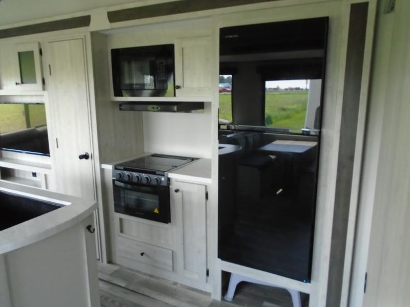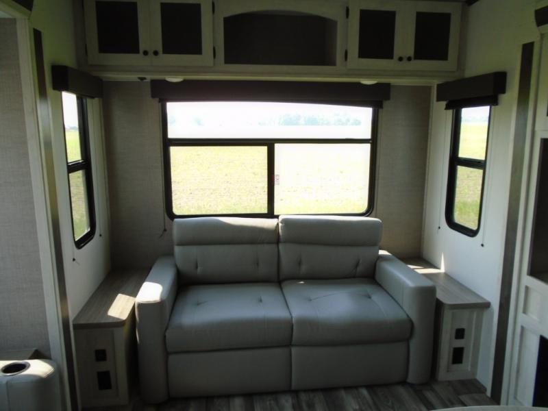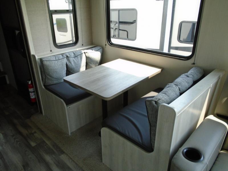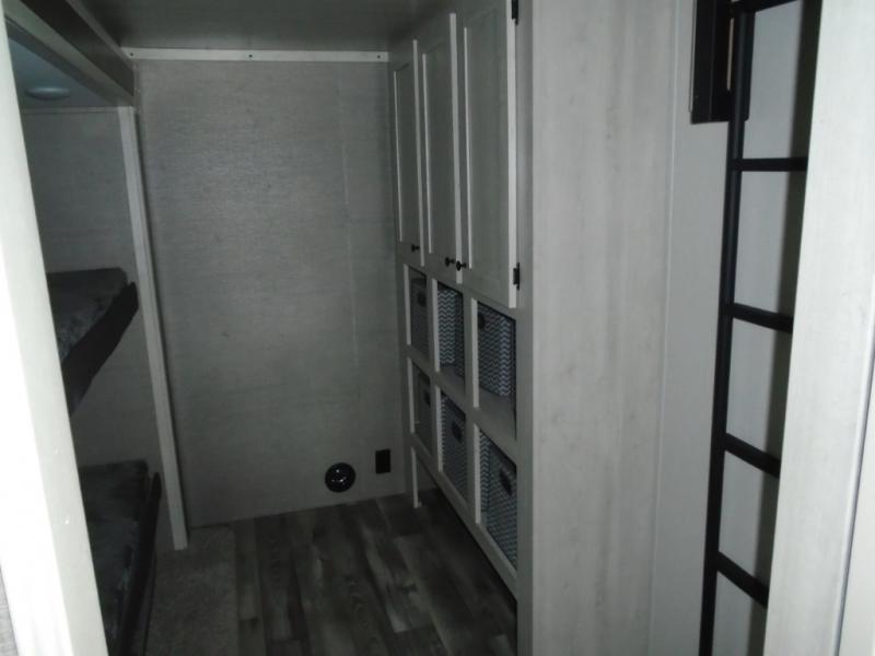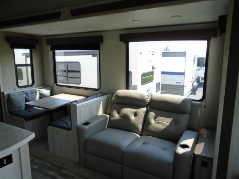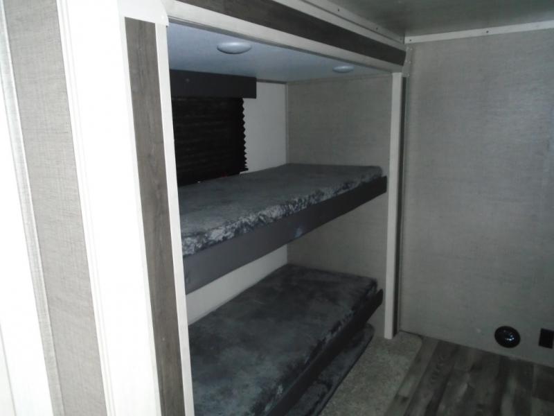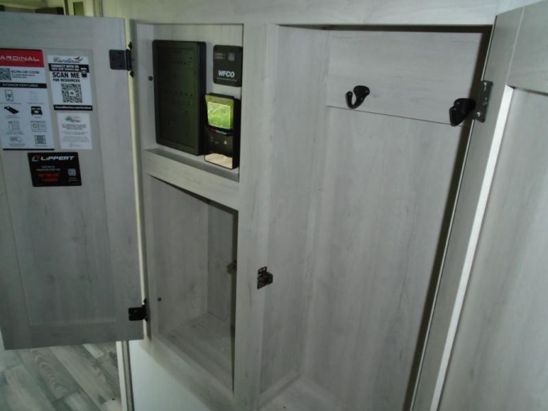 You'll have room for everyone in the Forest River Cardinal RED 36MB! With a king bed in the front main bedroom plus a bunk room with two bunks and a loft, there is plenty of space. There's lots of storage as well, with closets and cubby storage in each bedroom. You'll enjoy relaxing by the fireplace on the sofa or theater seats. The kitchen is well-equipped with a 17" 2-in-1 oven range, microwave, and 10.7 cu. ft. refrigerator. Enjoy your meals at the dinette booth, which also has hidden lift-up storage for even more of your gear.