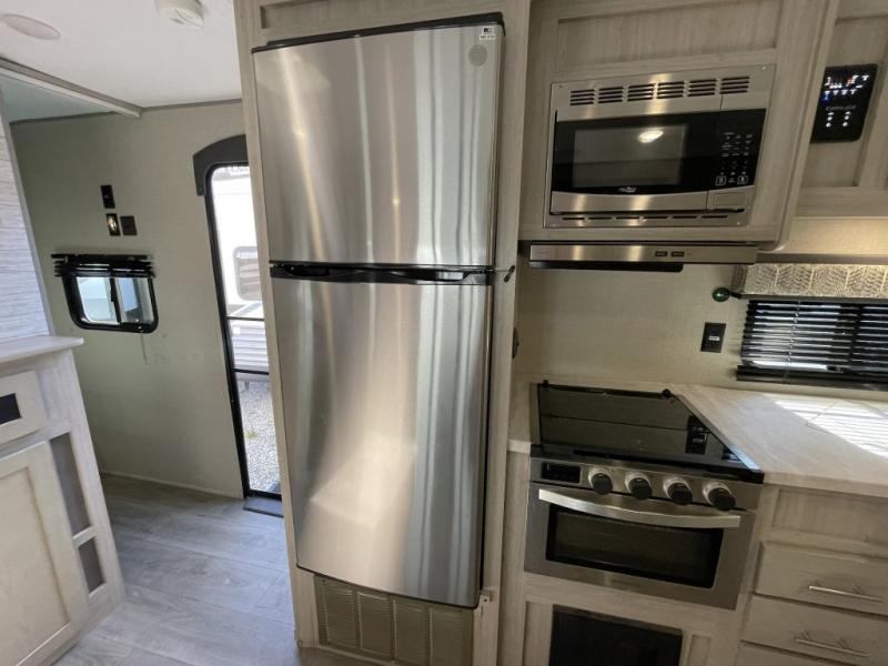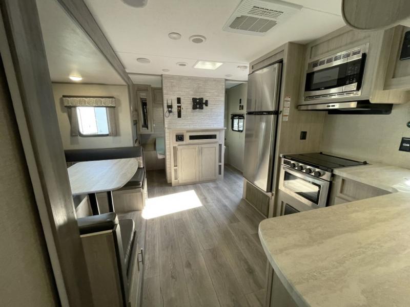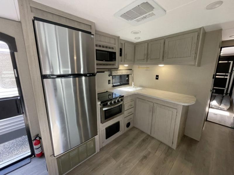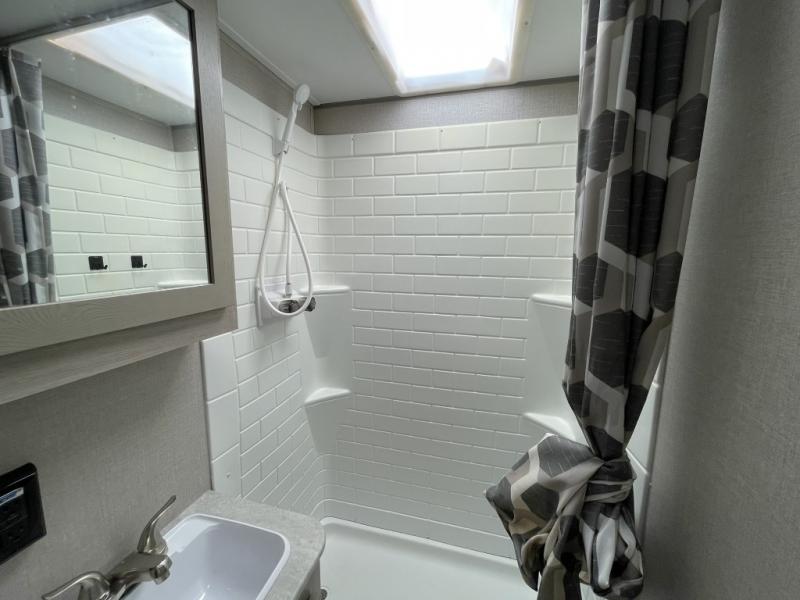Enjoy entertainment inside and out with the JBL Aura Cube media center, premium speakers, and RV-LINK 4G LTE WiFi booster. Step outside to relax under the electric awning with multicolor LED lighting and make use of the 15 foot Toy Loc cable and pet-friendly leash link system.