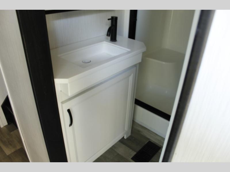 Each time you visit your favorite camping destination, you'll be so grateful to find the Forest River Cedar Creek Cottage destination trailer waiting for you! The exterior has ABS ribbed underbelly panels with no screws into the I-beam frame, a decorative front cap with molded picket fence, Dexter® heavy-duty axles with heavy-duty link plates and shackles, an electric awning with LED night lighting strip, and an enclosed and triple-layered insulated underbelly. The thermal-pane patio door will allow you to see the beautiful outside scenery from the comfort of indoors, and the 12V home theater system and control app for your smart phone will entertain you throughout all adventures.