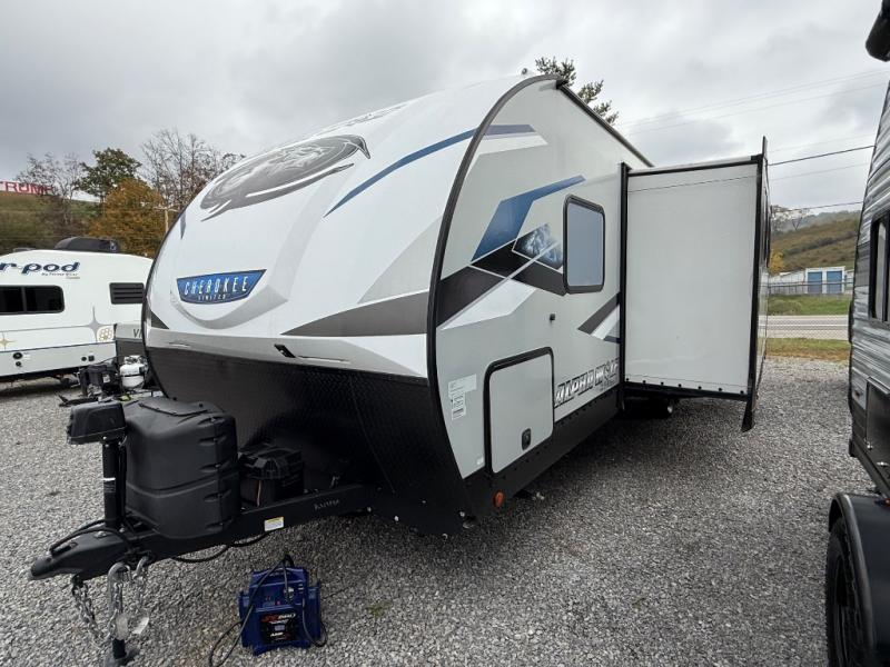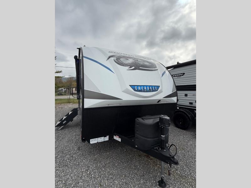 With any Cherokee Alpha Wolf travel trailer by Forest River you'll enjoy outstanding amenities, quality construction, and an affordable price. Each model features a "ToughBend" rigid skirt metal design, 5/8" tongue and groove plywood floor decking, and a "SuperTruss" roof structure that will hold up through years of camping memories. There is EZ-Clean deluxe kitchen backsplash indoors, along with an LED interior lighting package, a deluxe furniture pack, and many more comforts. These travel trailers include a utility center convenience light so you can easily check tank levels, and the outdoor TV prep means you can bring along your television for the big game. The Limited Package, Weather Guard Package, and Convenience Package include additional features found on select models, and there available options that can be added to further customize your Cherokee Alpha Wolf!