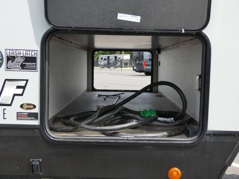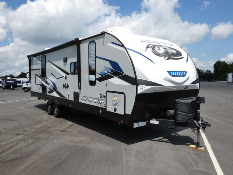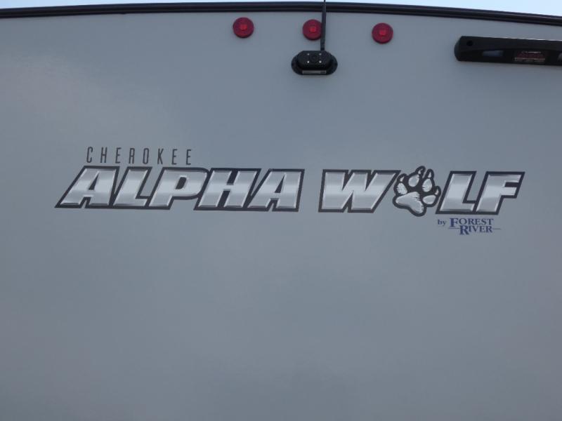 With any Cherokee Alpha Wolf travel trailer by Forest River you'll enjoy outstanding amenities, quality construction, and an affordable price. Each model features a "ToughBend" rigid skirt metal design, 5/8" tongue and groove plywood floor decking, and a "SuperTruss" roof structure that will hold up through years of camping memories. There is EZ-Clean deluxe kitchen backsplash indoors, along with an LED interior lighting package, a deluxe furniture pack, and many more comforts. These travel trailers include a utility center convenience light so you can easily check tank levels, and the outdoor TV prep means you can bring along your television for the big game.