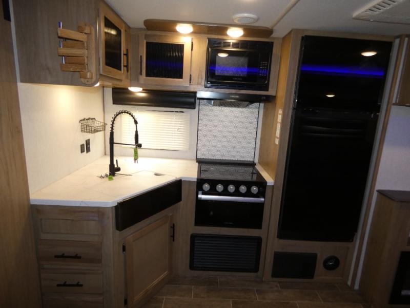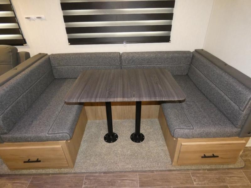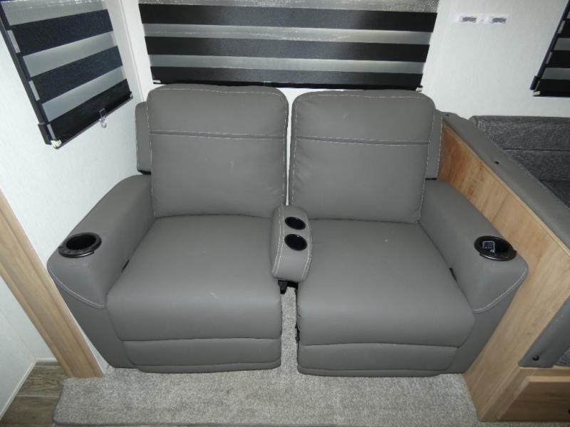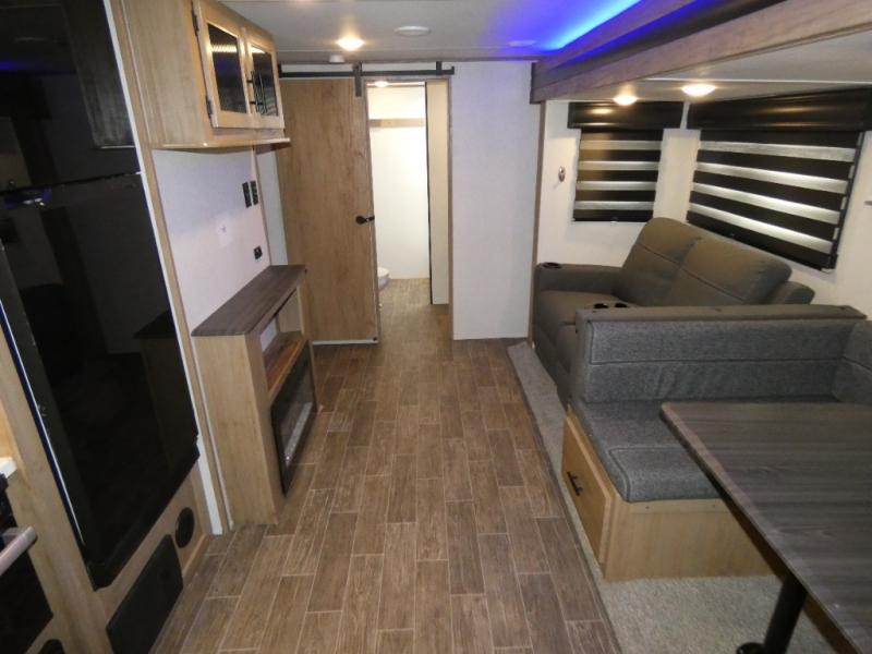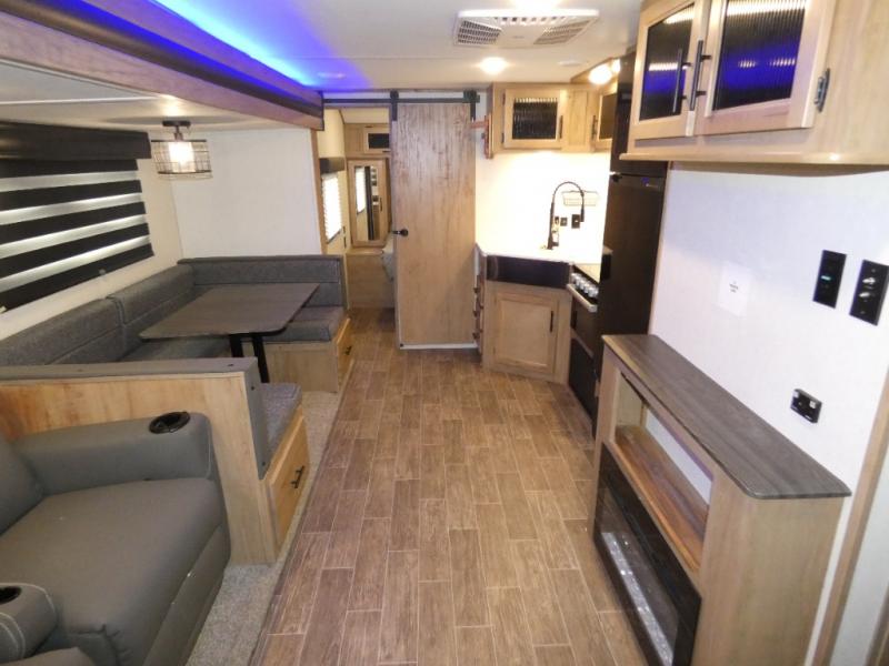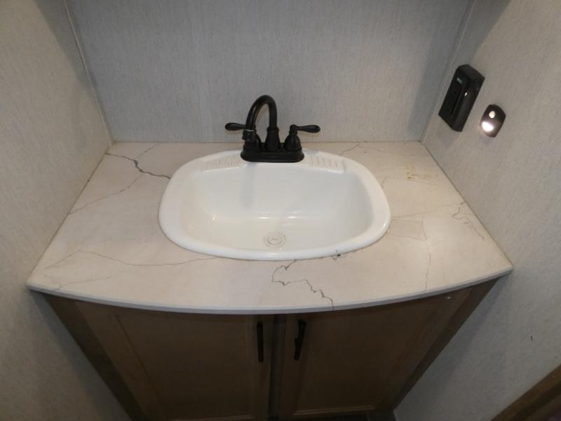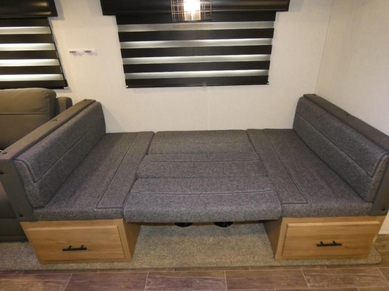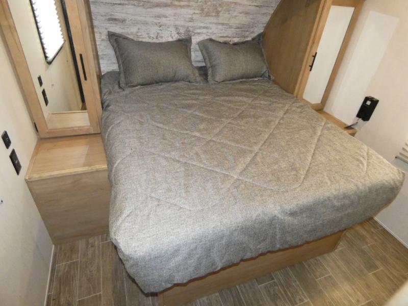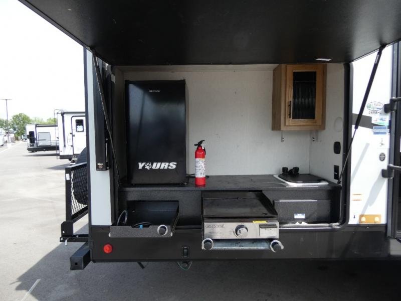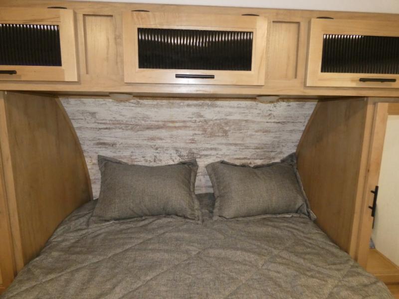 Whether you are a couple or family, this trailer will allow you to seek adventure and enjoy relaxation after hiking, fishing, and visiting with other RVers. The 20' exterior awning gives you an outdoor living area, the pass-through storage provides space for all your gear plus some, and the full outside kitchen includes a fridge/freezer, a working sink, and cabinet storage. The interior is spacious thanks to the large slide out in the main area that offers furniture to relax on, dine at, and even sleep on. You will also find an oversized rear bath with a barn-style entry door, and linen storage for clean towels. The chef will love the walk-in pantry in the kitchen, along with a residential refrigerator, dual pots and pans drawers, and a farm-style sink. And don't overlook your own private bedroom up front with a walk-around queen bed, dual nightstands and shirt closets, plus TV prep!