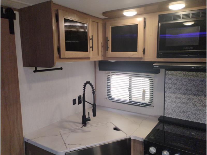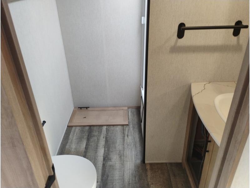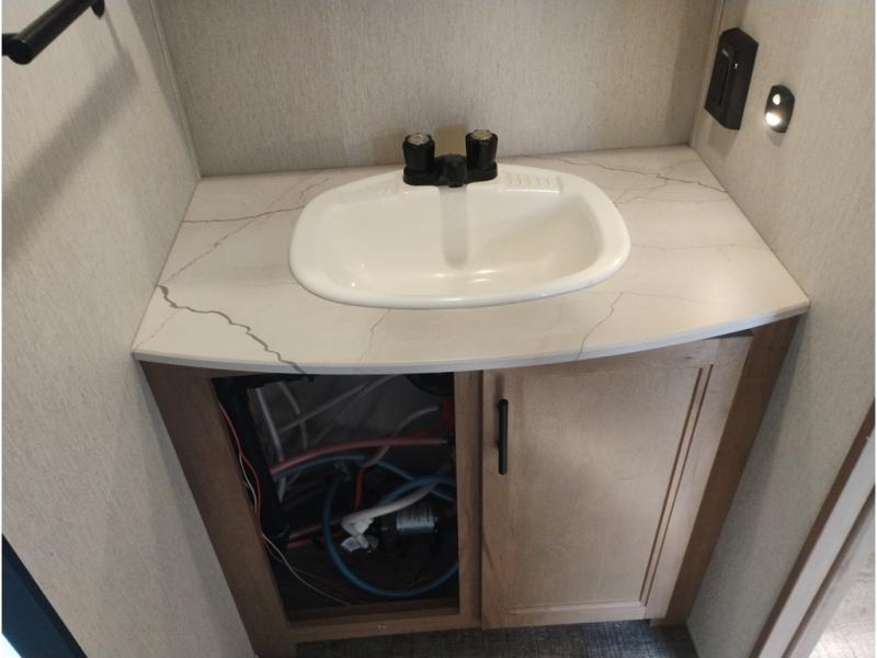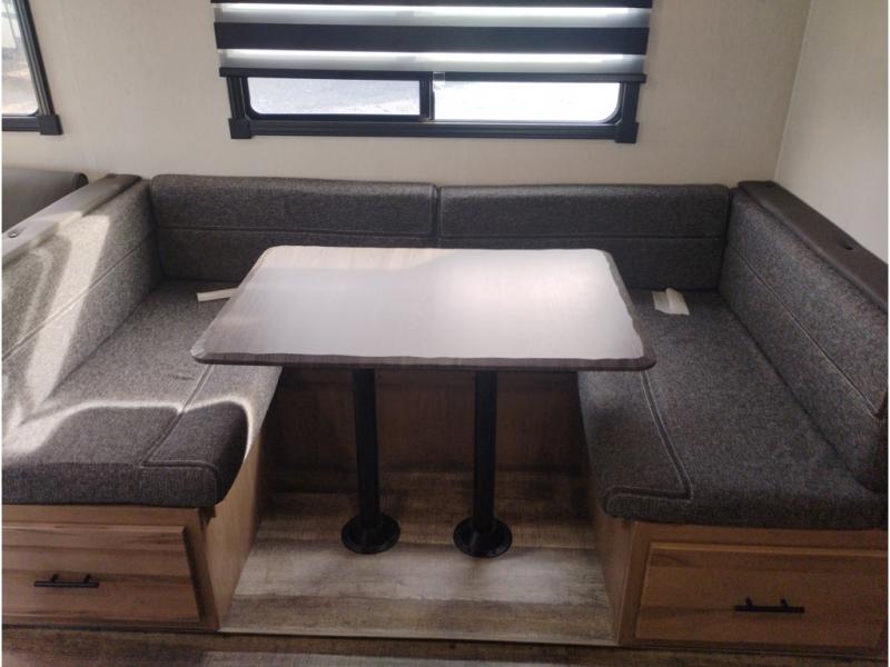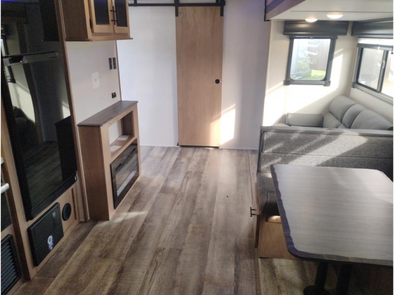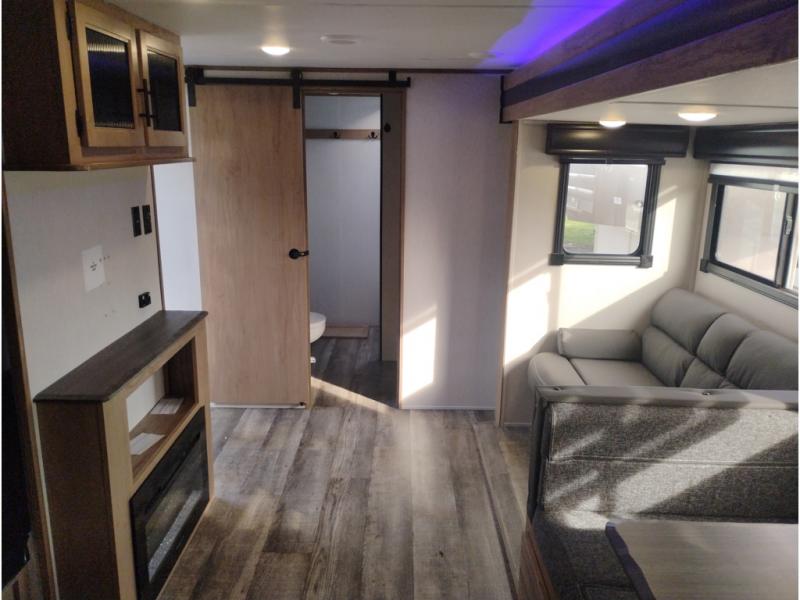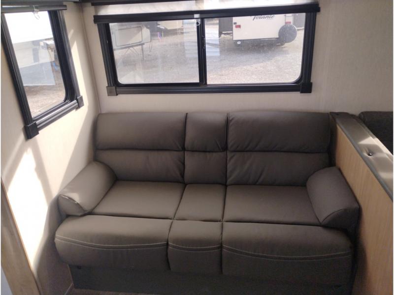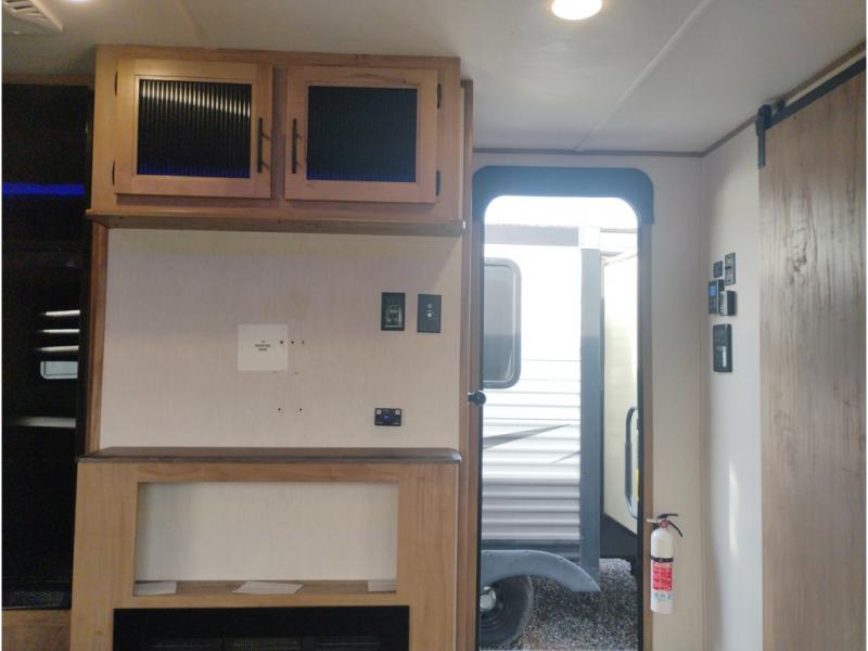 Whether you are a couple or family, this trailer will allow you to seek adventure and enjoy relaxation after hiking, fishing, and visiting with other RVers. The 20' exterior awning gives you an outdoor living area, the pass-through storage provides space for all your gear plus some, and the full outside kitchen includes a fridge/freezer, a working sink, and cabinet storage. The interior is spacious thanks to the large slide out in the main area that offers furniture to relax on, dine at, and even sleep on. You will also find an oversized rear bath with a barn-style entry door, and linen storage for clean towels. The chef will love the walk-in pantry in the kitchen, along with a residential refrigerator, dual pots and pans drawers, and a farm-style sink. And don't overlook your own private bedroom up front with a walk-around queen bed, dual nightstands and shirt closets, plus TV prep!