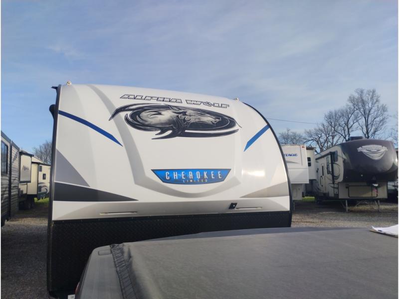 With any Cherokee Alpha Wolf travel trailer by Forest River you'll enjoy outstanding amenities, quality construction, and an affordable price. Each model features a "ToughBend" rigid skirt metal design, 5/8" tongue and groove plywood floor decking, and a "SuperTruss" roof structure that will hold up through years of camping memories. There is EZ-Clean deluxe kitchen backsplash indoors, along with an LED interior lighting package, a deluxe furniture pack, and many more comforts. These travel trailers include a utility center convenience light so you can easily check tank levels, and the outdoor TV prep means you can bring along your television for the big game. The Limited Package, Weather Guard Package, and Convenience Package include additional features found on select models, and there available options that can be added to further customize your Cherokee Alpha Wolf!
