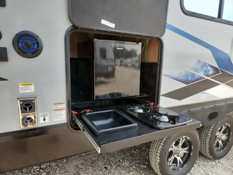 With any Cherokee Alpha Wolf travel trailer by Forest River you'll enjoy outstanding amenities, quality construction, and an affordable price. Each model features a "ToughBend" rigid skirt metal design, 5/8" tongue and groove plywood floor decking, and a "SuperTruss" roof structure that will hold up through years of camping memories. There is EZ-Clean deluxe kitchen backsplash indoors, along with an LED interior lighting package, a deluxe furniture pack, and many more comforts. These travel trailers include a utility center convenience light so you can easily check tank levels, and the outdoor TV prep means you can bring along your television for the big game. The Limited Package, Weather Guard Package, and Convenience Package include additional features found on select models, and there available options that can be added to further customize your Cherokee Alpha Wolf!