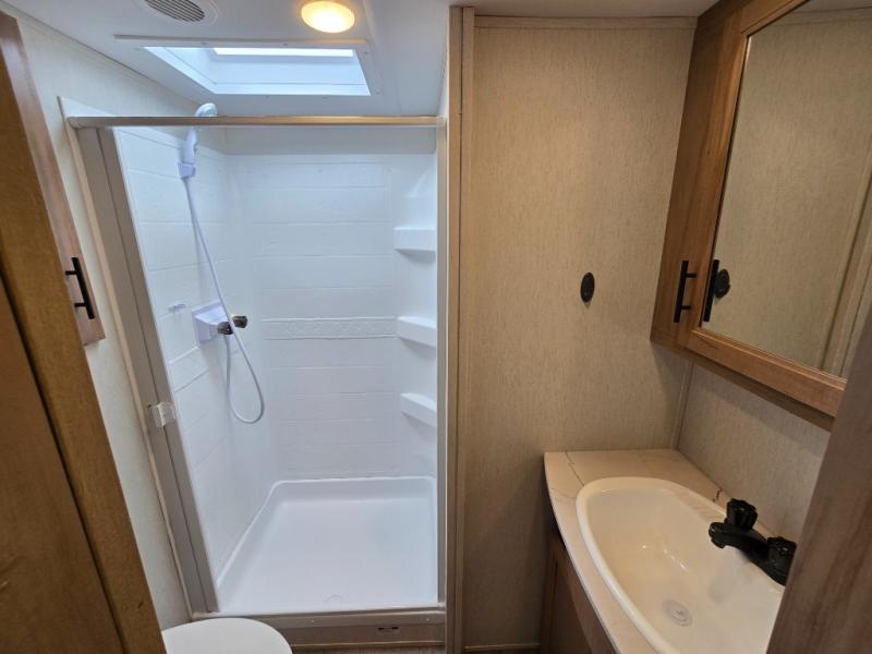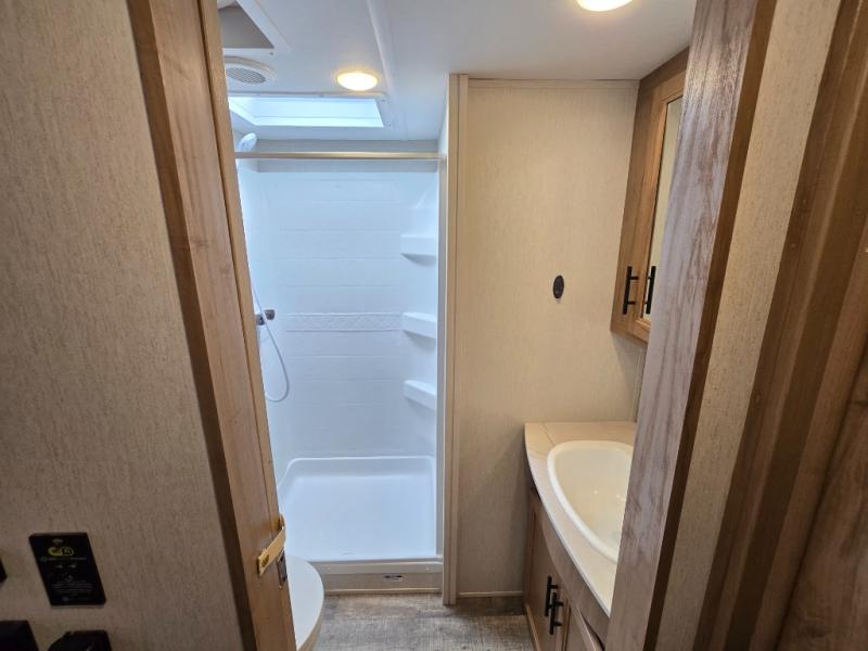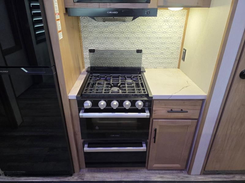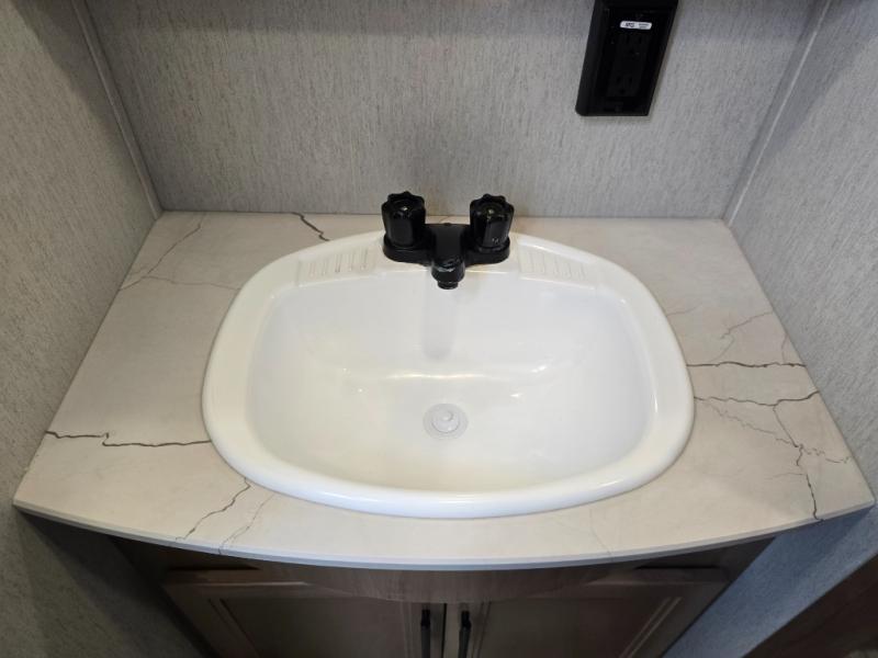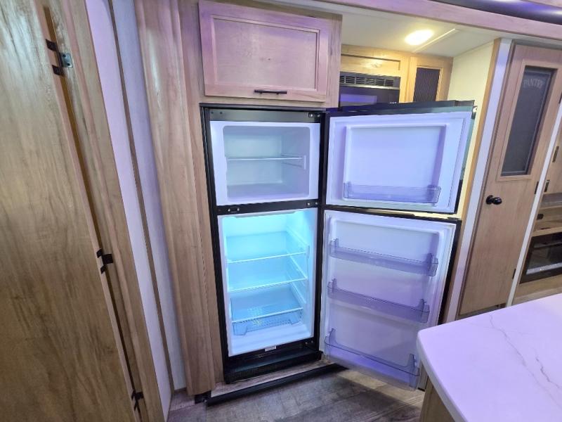 You will have amazing residential comfort in the Forest River Cherokee Arctic Wolf Suite fifth wheels! These units have a “SuperStor” dual-cavern basement storage compartment to allow you to bring more gear, and they have been constructed with a “ToughBend” rigid skirt metal design, a 1x engineered wood “SuperTruss” roof structure with 3/8" decking, and a 5/8” tongue-and-groove plywood floor decking. Each model includes Leash Latch pet safety technology, an outside shower with hot/cold water, preparations for an exterior TV, motion-sensing lighting, and a smart monitor panel with smart phone Bluetooth connectivity. The supersized central air conditioning unit (15,000 BTU) with quick cool air dump feature and second oversized 15,000 BTU ducted air conditioner will cool your unit down in a snap when you camp in the hot summer months.