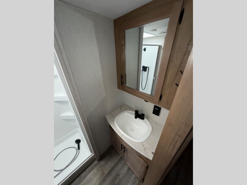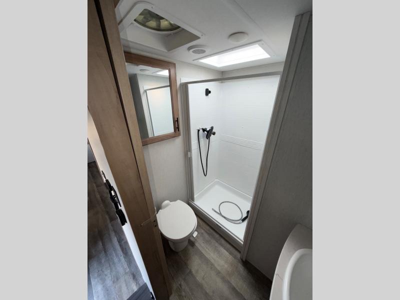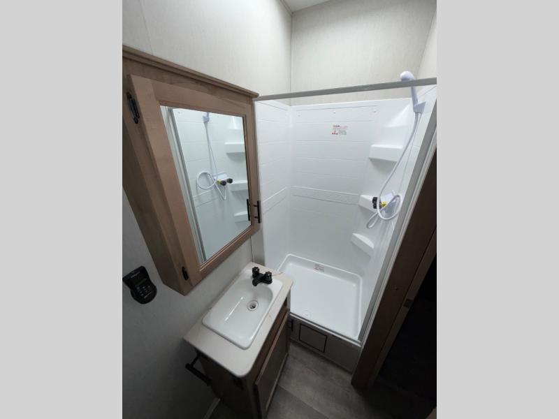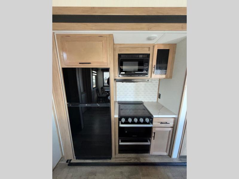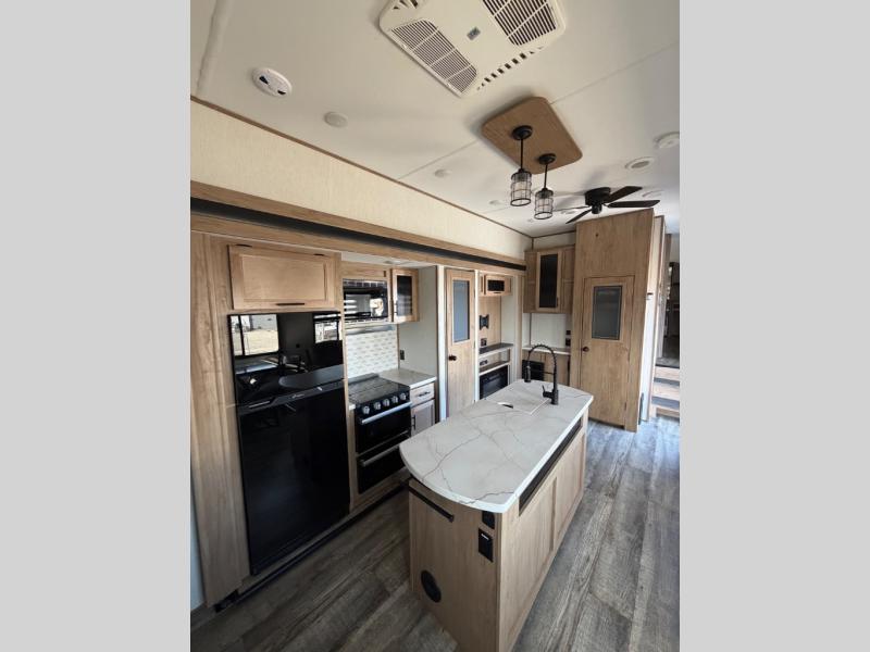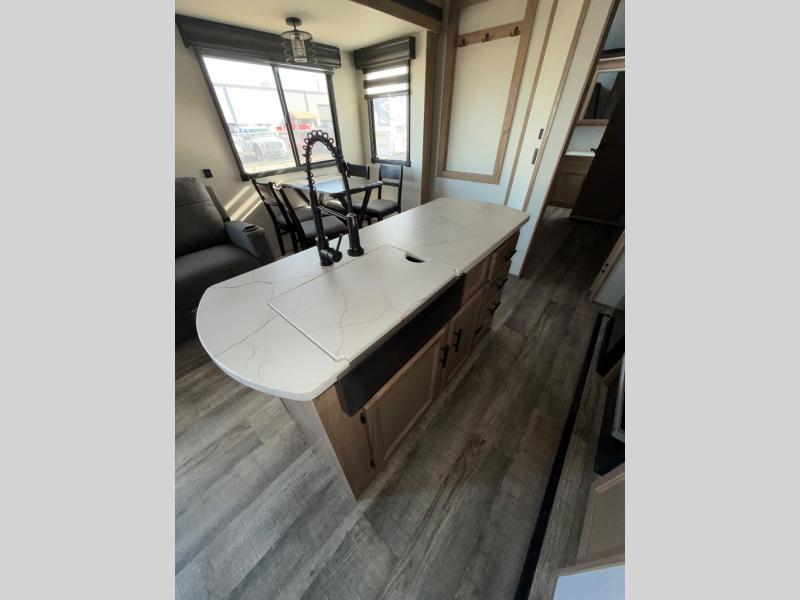 You will have amazing residential comfort in the Forest River Cherokee Arctic Wolf Suite fifth wheels! These units have a “SuperStor” dual-cavern basement storage compartment to allow you to bring more gear, and they have been constructed with a “ToughBend” rigid skirt metal design, a 1x engineered wood “SuperTruss” roof structure with 3/8" decking, and a 5/8” tongue-and-groove plywood floor decking. Each model includes Leash Latch pet safety technology, an outside shower with hot/cold water, preparations for an exterior TV, motion-sensing lighting, and a smart monitor panel with smart phone Bluetooth connectivity. The supersized central air conditioning unit (15,000 BTU) with quick cool air dump feature and second oversized 15,000 BTU ducted air conditioner will cool your unit down in a snap when you camp in the hot summer months.