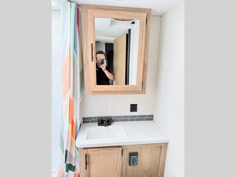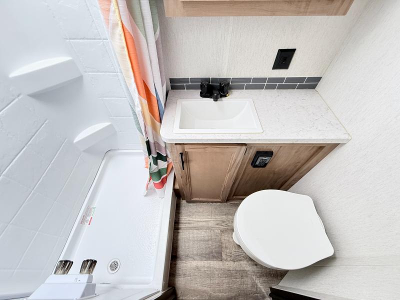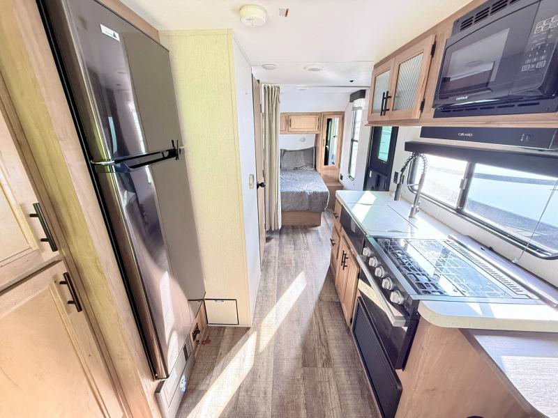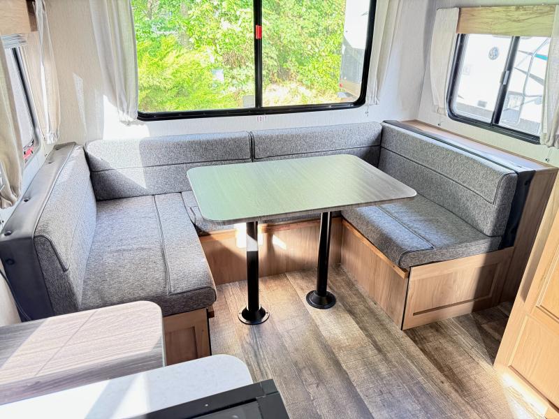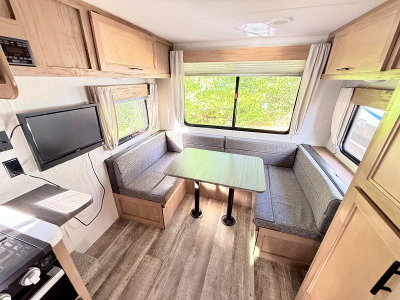 You and your favorite person will love this Cherokee Grey Wolf travel trailer for any weekend excursions away from home. The large U-shaped dinette in the rear of the unit makes it easy to invite fellow campers in for an evening snack and a card game or two. It can also easily accommodate extra overnight guests as the dinette folds down to create additional sleeping space for two. The queen bed up front will have you feeling right at home, and the full bath which is right across from the entry door is easily accessible from outside. There are plenty of storage options with the overhead cabinets, the pantry, and the wardrobes inside, plus there is also outside storage!
