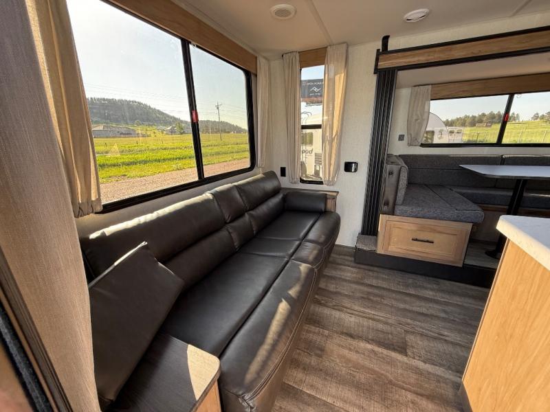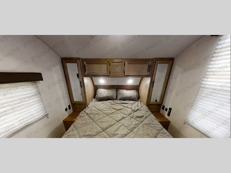 This Cherokee Grey Wolf travel trailer is perfect for your small family and will leave you planning your next outing before you are back from your current weekend away! You will find all of the comforts you need with plenty of livable space including a U-shaped dinette slide. There is also a sofa for more seating when company arrives, and there are end tables on either side to prevent spills. A spacious walk-through bath leads to a front private bedroom where you will enjoy a great night's rest on a comfortable queen-size bed. You will find ample storage for clothing in the wardrobes that are above handy nightstands for your personal things. There are even lights mounted above the bed on each side which makes it easy to read a couple of chapters before drifting off to sleep.