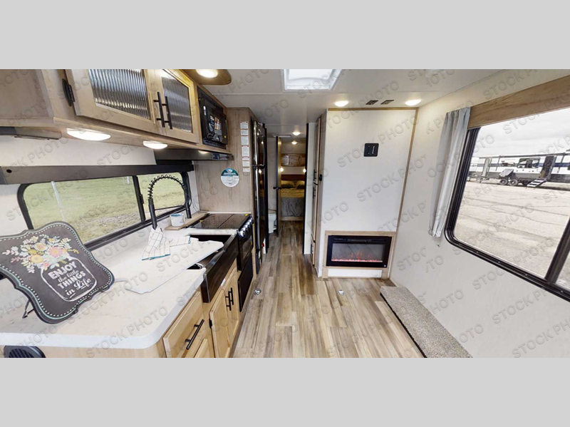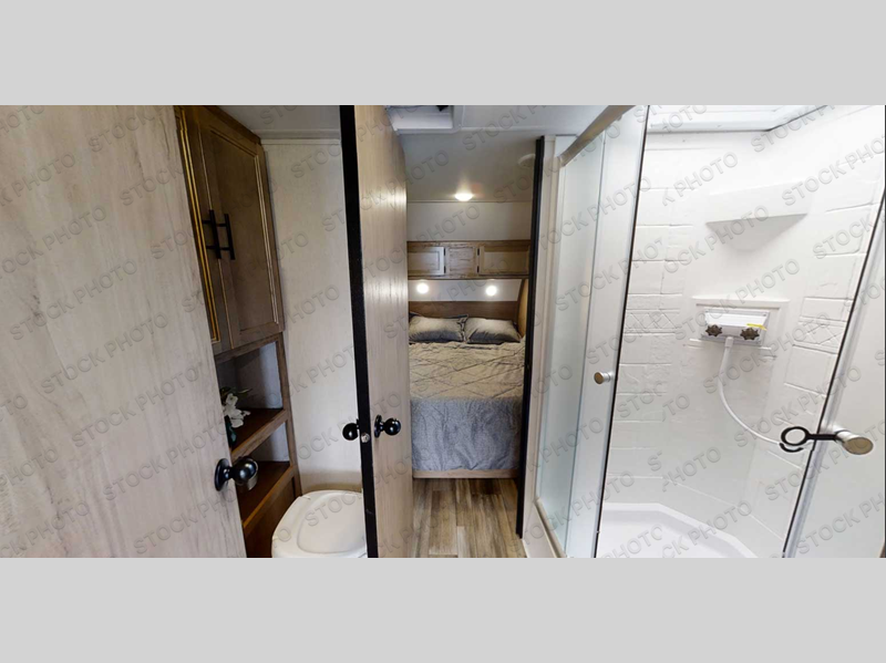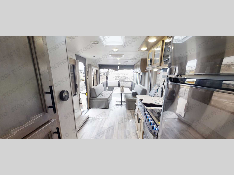 You won't want to miss out on an adventure taken with this Cherokee Grey Wolf toy hauler! This unit provides both an indoor and outdoor kitchen so that you can choose where you want to spend your time preparing dinner, and if you like eating your meals inside away from the bugs, you'll be able to sit down on one of the two fold-down sofas with dinette table in between and enjoy that meal. You'll also appreciate having a walk-through bath because it provides an entry door on either side so that you can discreetly enter the bathroom from the front private bedroom in the early morning hours.