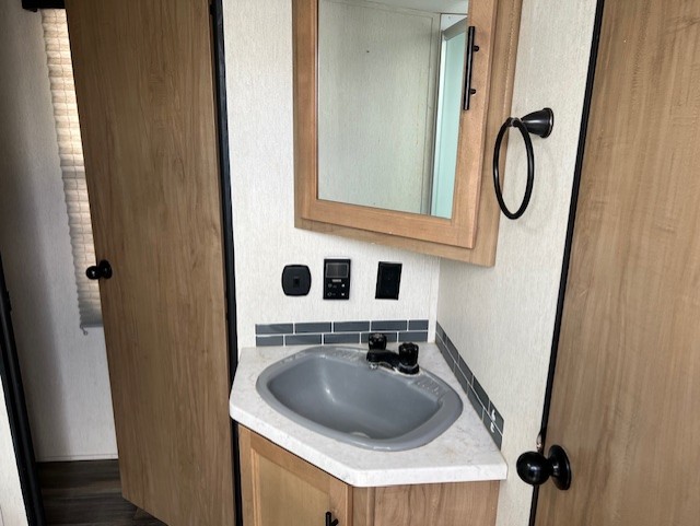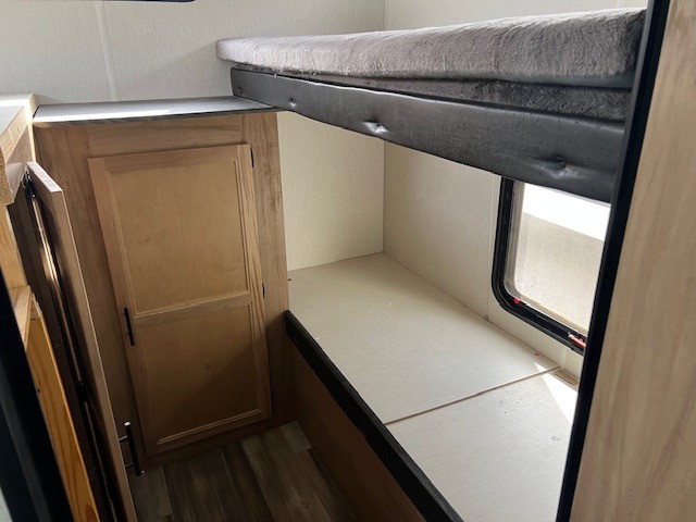 Your larger family will love spending weekends away with this Cherokee Grey Wolf travel trailer as their home away from home. This model offers lots of sleeping space with three bunk beds in the rear private bunkhouse. In the front, there is a master suite with wardrobes and nightstands on either side of the queen bed, and it even has private access to the dual-entry bath. The two entry doors will make accessing the trailer easy for everyone, and you will appreciate the abundant storage throughout this unit including large overhead cabinets, an oversized pantry, and numerous outside storage compartments for all of your outdoor gear. You also even have an outside bar & grill!