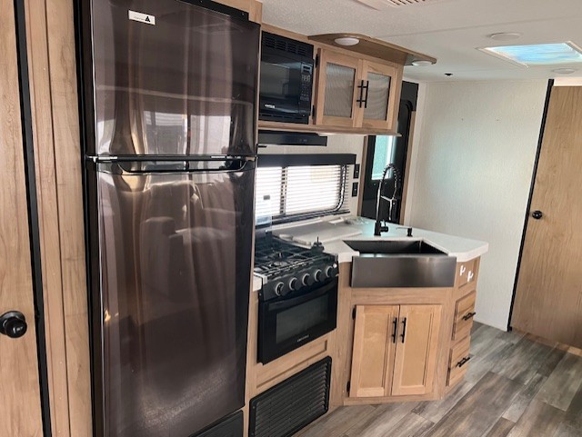 Whether it's a journey that will take you to new locations or a tried-and-true getaway to that favorite and memorable destination, the Forest River Cherokee Grey Wolf travel trailers and toy haulers are going to make the trip worth it every single time! You can travel in confidence with the premium wheel package, seamless roofing membrane with heat reflectivity, Power Gear frame technology with space-saver rail design, and Cherokee back-up camera system. The Cherokee Grey Wolf's interior is highly attractive with its stainless steel kitchen suite package, premium bedding ensemble and comforter, and 8" ceiling-mounted subwoofer with accent lighting. You will also find a black waste tank flush-out kit, an outside shower with hot and cold water, an armored underbelly tank enclosure, a power tongue jack, and an RV grill quick connect.