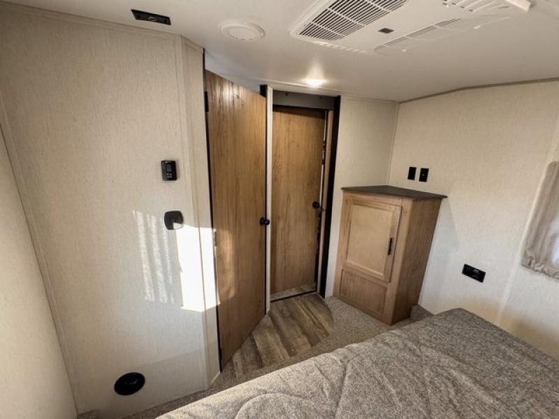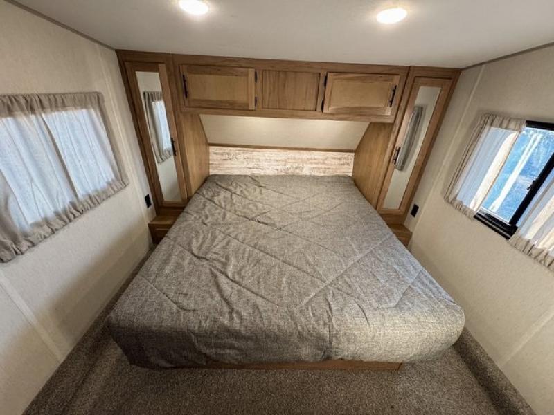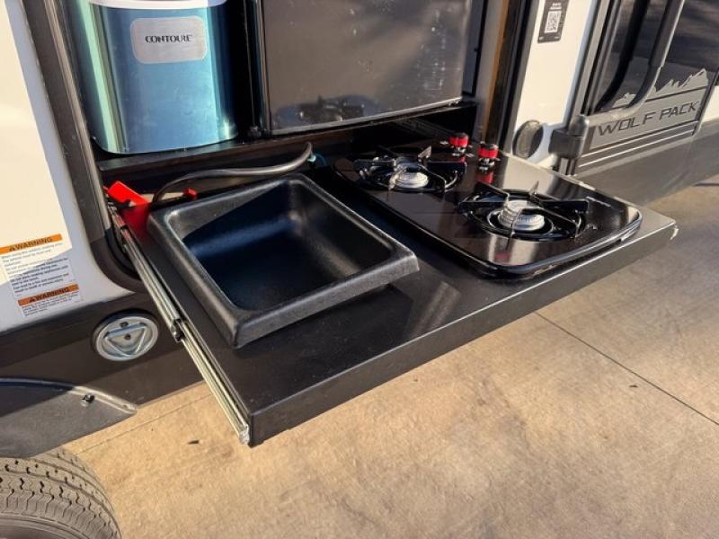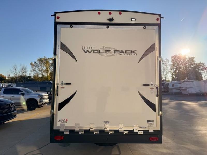 Run with the pack in any one of these Forest River Cherokee Wolf Pack toy haulers! They are affordable and versatile with a 102" widebody design to pack in all of the necessary features for a great adventure with your family and toys. The grey high gloss gel exterior will turn heads on the highway and the LED interior/exterior lights will make life easier. An outside shower with hot and cold water helps to keep the mud outside where it belongs. With an external 30 gallon fuel station, you won't have to worry about your toys being low on fuel. The Platinum package adds extra conveniences like a ramp door patio deck railing system, a Happijac bed lift system, and an industrial rubber garage floor on enclosed garage models. Come find the perfect model for you today!