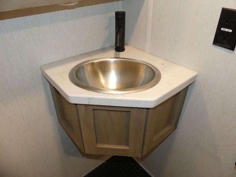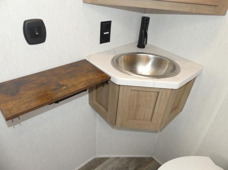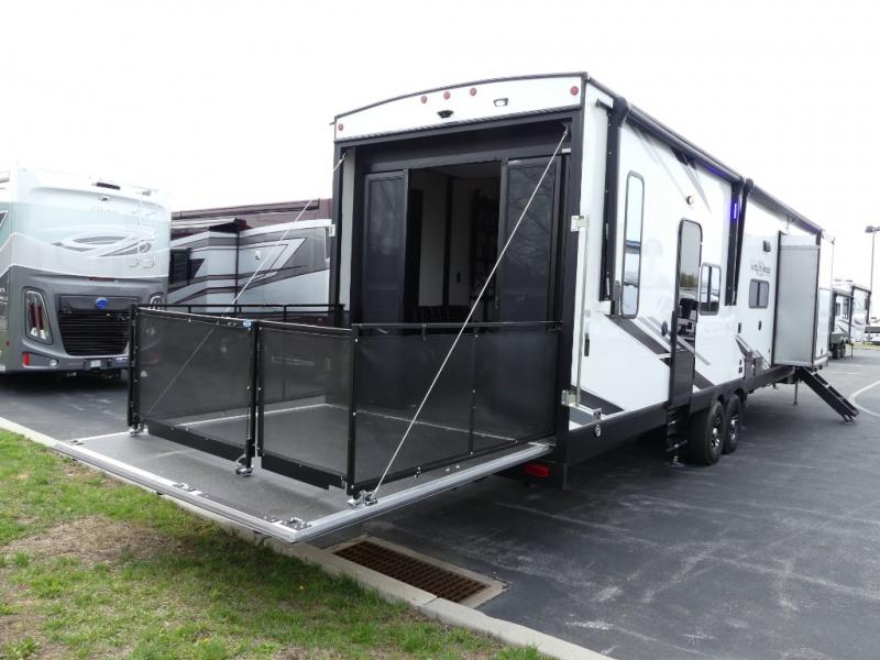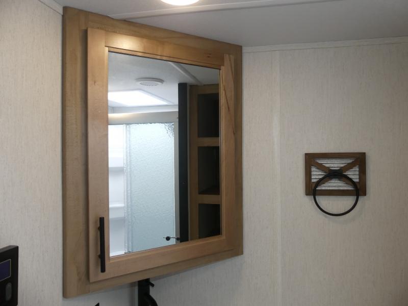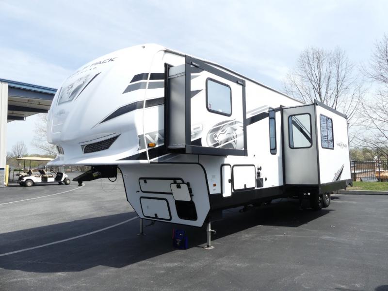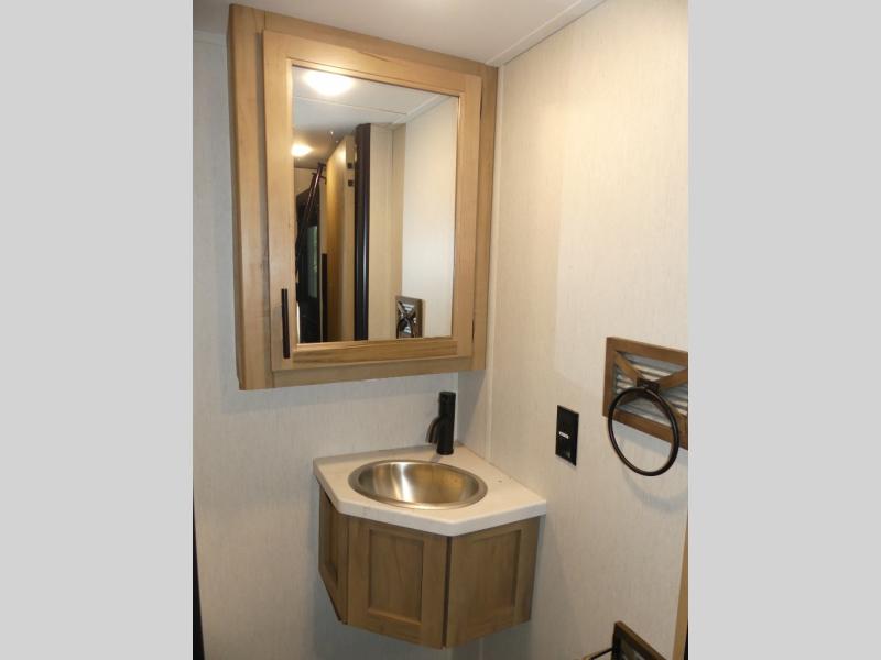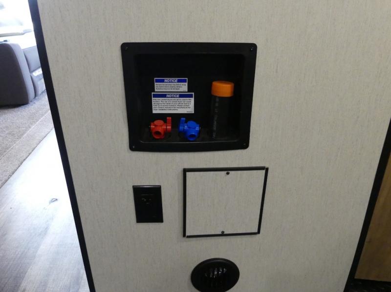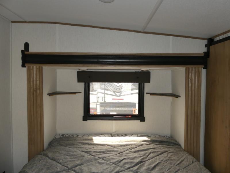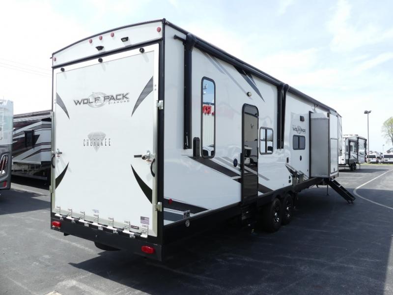 With any Cherokee Wolf Pack by Forest River, you will enjoy the most affordable and versatile toy hauler on the market! These fifth wheels and travel trailers feature an 8' 6" widebody design so you can bring along four-wheelers, kayak's, ATV's, golf carts, and gear galore! There is a forced air heated underbelly and enclosed holding tanks, plus a large 35,000 BTU forced air ducted furnace so you can camp all year around. Inside, you'll find zebra shades in the living room, real wood cabinet doors and drawers, LED lights, and a residential stainless steel farm sink. There is also a power awning with LED accent lighting, a large exterior folding grab handle, and an outside shower with hot and cold water to wash off your riding boots.