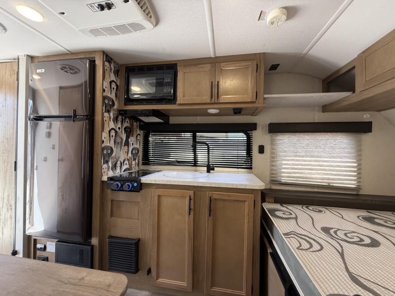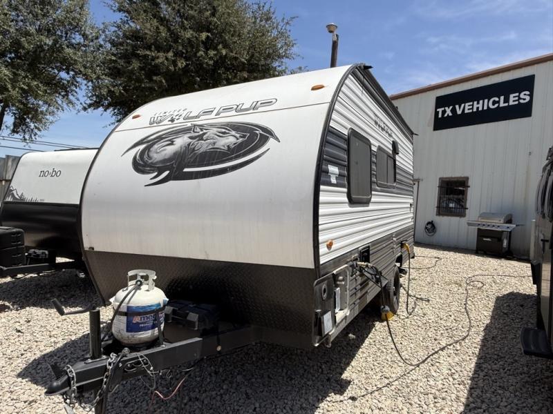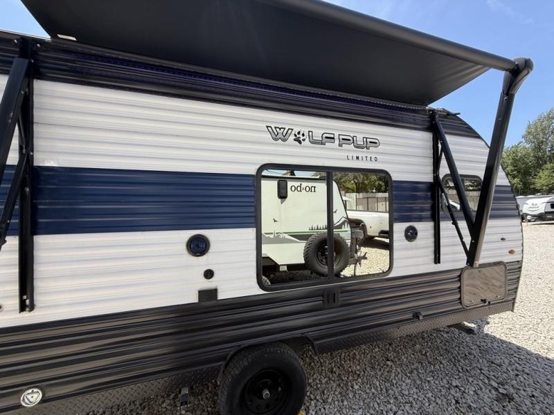 DELIVERY AVAILABLE IN ALL 48 STATES! 2023 FOREST RIVER CHEROKEE WOLF PUP 14CC LIMITED EDITION . Length is 19FT. SUPER NICE! QUEEN BED WITH STORAGE CABINETS ABOVE AND UNDERNEATH. DINETTE CONVERTS INTO A SLEEPER. SUPER NICE FINISH THROUGHOUT THIS TRAILER. BEAUTIFUL COMPACT KITCHEN WITH MARBLE-LIKE COUNTERTOP. STAINLESS STEEL SINGLE BASIN SINK WITH COVER. 2 BURNER STOVE TOP WITH LED LIGHTING. STAINLESS STEEL DUAL-POWER REFRIGERATOR. REAR BATHROOM & SHOWER.. PLENTY OF STORAGE COMPARTMENTS ALL AROUND THIS TRAILER. GLASS ENTRY DOOR FOR EASY ACCESS. UNDERNEATH BED STORAGE. SPACIOUS EXTERIOR STORAGE COMPARTMENT. FULL STEREO SYSTEM WITH INDOOR AND OUTDOOR SPEAKERS.. AWNING WITH LED LIGHTING, . 200W FACTORY SOLAR CONNECTIONS. TANKLESS WATER HEATER. REVERSE CAMERA. Sleeps 3, SUPER COLD A/C. Super Clean. SUPER NICE TRAILER ONLY 2884 UVW. CAN BE PULLED WITH A SMALL SUV. 30AMP POWER. OUR PRICE $11,995. SEVERAL SUPER NICE RVS TO CHOOSE FROM. We are located in KENNEDALE TX. We show Rv's 7 Days A WEEK BY APPOINTMENT. Call BRET 817*805*0067 or AMY 817*658*4633 FREE DELIVERY AVAILABLE ON ALL 48 STATES. WE INSPECT & GO THROUGH ALL TRAILERS TO ENSURE OUR CUSTOMERS ARE 100% SATISFIED.