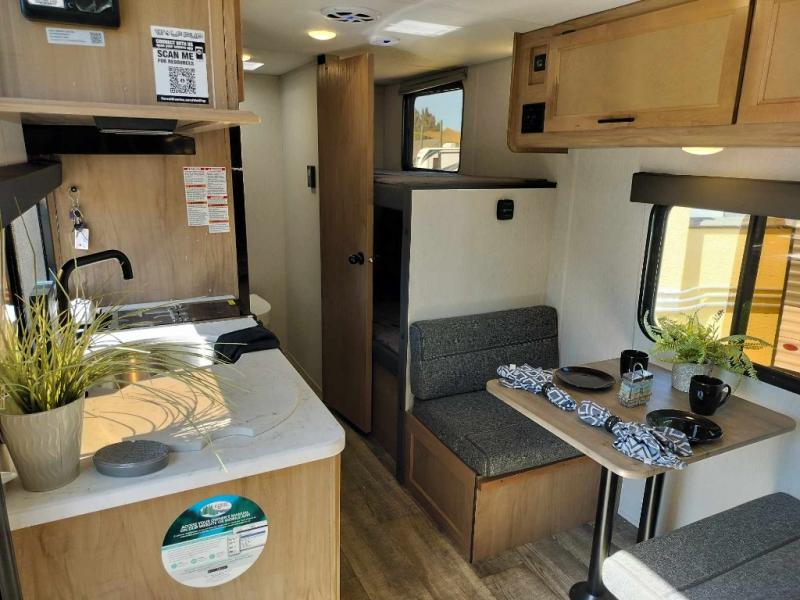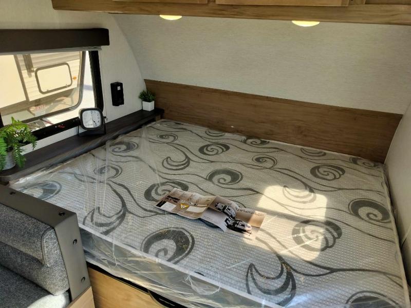 What I liked most: You can see a lot of thought has gone into this small end camper. The bunks and bed have been placed with space efficiency. The storage throughout actually has some nice depth.
