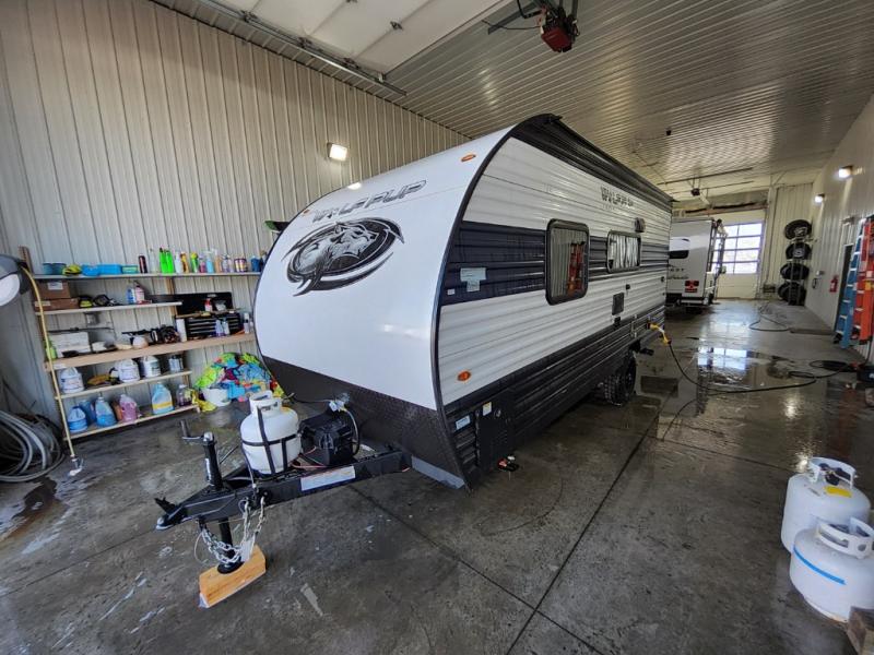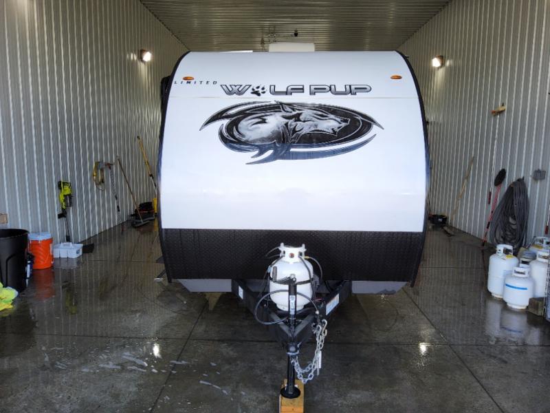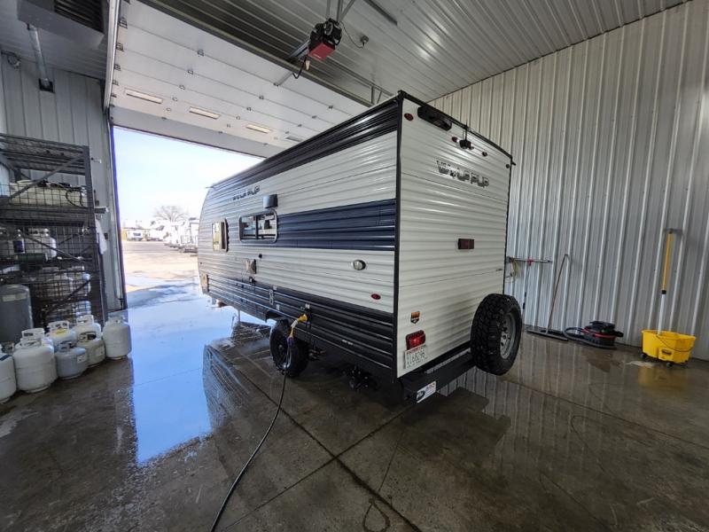 Each one of these Forest River Cherokee Wolf Pup travel trailers and toy haulers are lightweight and easy to tow! They are fully self contained with ample tank capacities, an abundance of storage space, and filled with at home amenities. The aerodynamic smooth radius front profile, the Power Gear frame technology, and the space saver rail design make them easier to maneuver. You will also appreciate the seamless roofing membrane with heat reflectivity to keep the sun from making your unit a hot box. The tongue and groove plywood flooring will hold up for years of fun and the USB charging stations help to keep your electronics at 100% while you're away. Come find the best model for you today!
