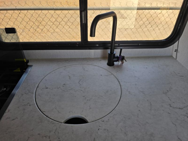 What I liked most: The cabinets are deep which allows for more storage, we all know how important that is. The bed area is open and has plenty of arms reach counter space and overhead storage. The bathroom seems to be a good size. Ceiling speaker system is a nice touch.