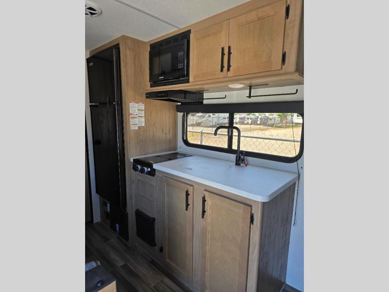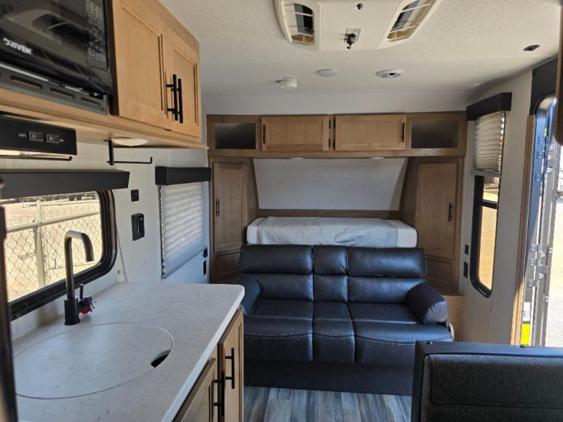 You will experience versatile living in this travel trailer with the Cherokee Sleep System! It lets you easily convert the front queen bed into a comfortable sofa to sit on during the day. Freshen up each morning in the full rear bathroom with the tub/shower and large sink with cabinet storage below it and mirror above it. Fill your bellies with the perishables stored in the 11 cu. ft. Cannon high efficiency refrigerator and cook them on the high output cooktop then enjoy them at the booth dinette. You could even prepare a meal while breathing in some fresh air at the outside mini kitchen while staying protected by the 12' power awning. Easily store all of your outdoor gear in the outside storage area too!