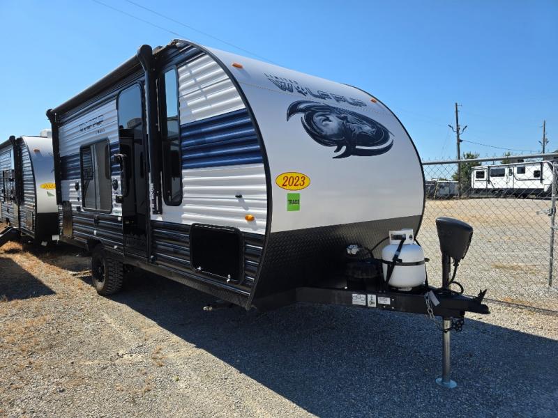Each one of these Forest River Cherokee Wolf Pup travel trailers and toy haulers are lightweight and easy to tow! They are fully self contained with ample tank capacities, an abundance of storage space, and filled with at home amenities. The aerodynamic smooth radius front profile, the Power Gear frame technology, and the space saver rail design make them easier to maneuver. You will also appreciate the seamless roofing membrane with heat reflectivity to keep the sun from making your unit a hot box. The tongue and groove plywood flooring will hold up for years of fun and the USB charging stations help to keep your electronics at 100% while you're away. Come find the best model for you today!