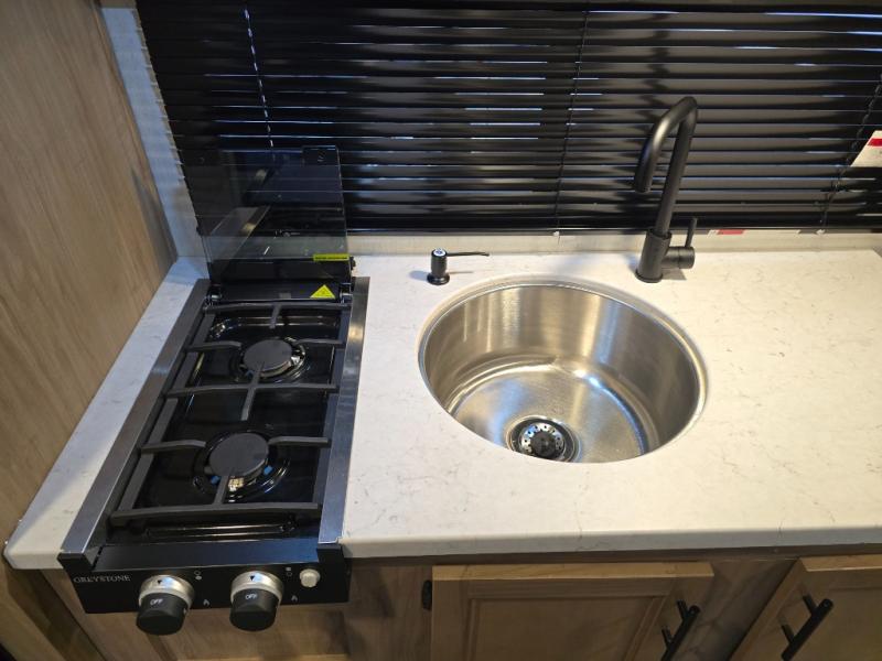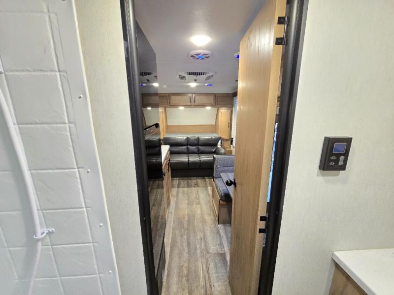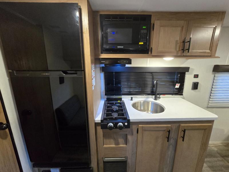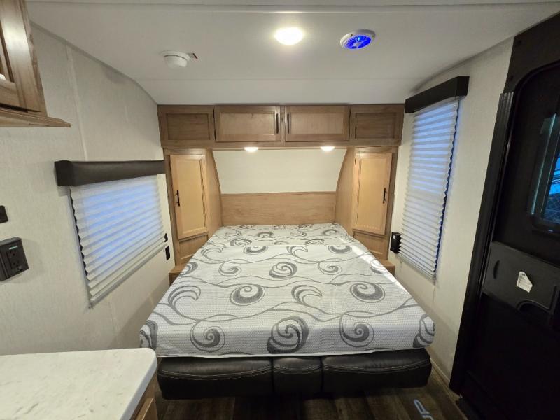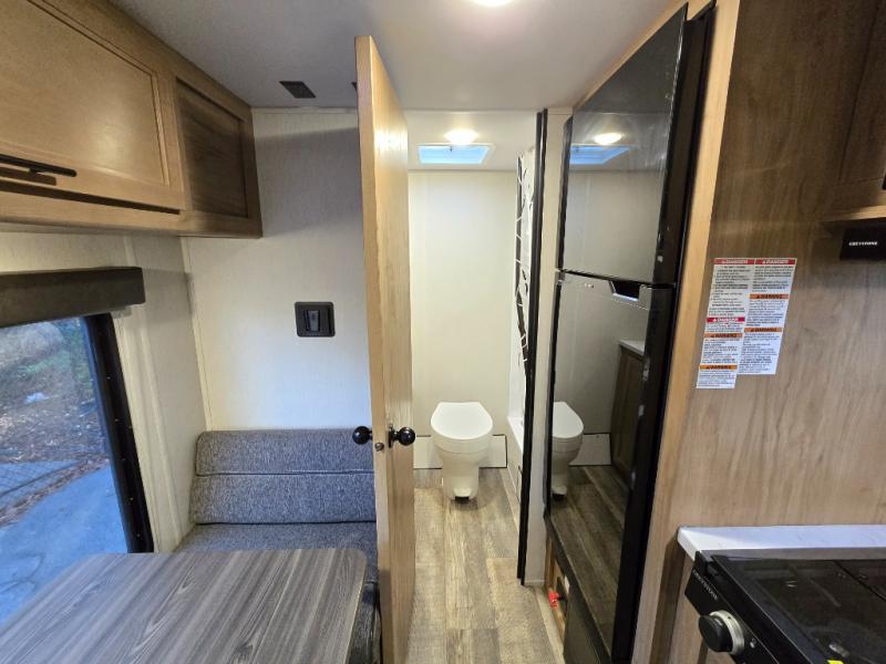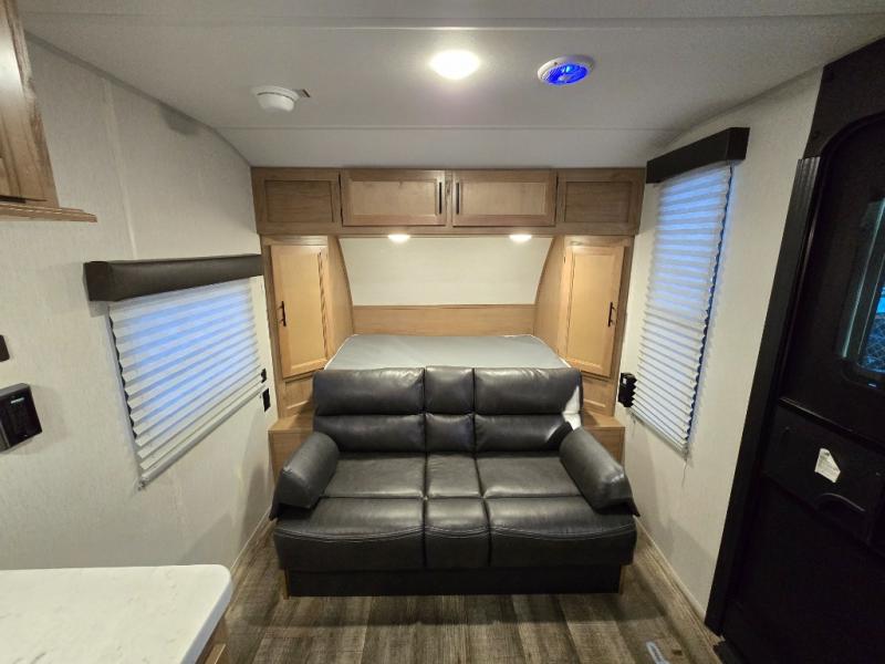 You will experience versatile living in this travel trailer with the Cherokee Sleep System! It lets you easily convert the front queen bed into a comfortable sofa to sit on during the day. Freshen up each morning in the full rear bathroom with the tub/shower and large sink with cabinet storage below it and mirror above it. Fill your bellies with the perishables stored in the 11 cu. ft. Cannon high efficiency refrigerator and cook them on the high output cooktop then enjoy them at the booth dinette. You could even prepare a meal while breathing in some fresh air at the outside mini kitchen while staying protected by the 12' power awning. Easily store all of your outdoor gear in the outside storage area too!