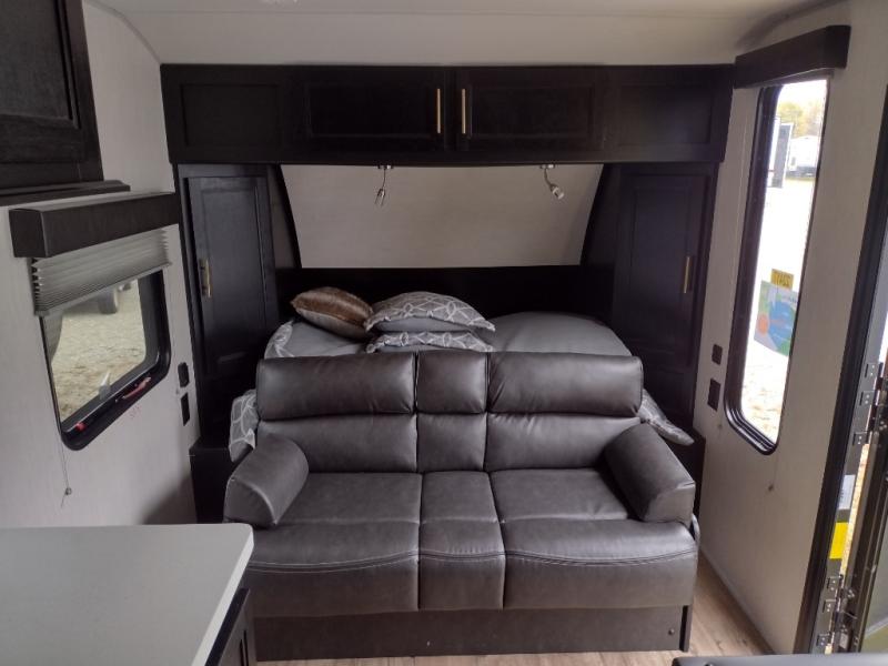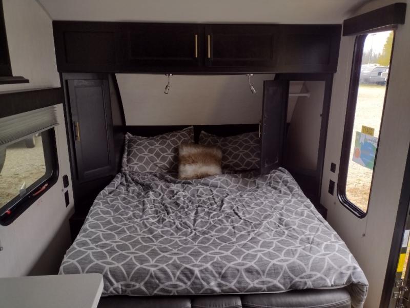 With the Cherokee Sleep System, you will have a versatile camping experience! It lets you easily convert the front queen bed into a comfortable sofa to sit on during the day. Freshen up each morning in the full rear bathroom with the tub/shower and large sink with cabinet storage below it and mirror above it. Fill your bellies with the perishables stored in the 11 cu. ft. Cannon high efficiency refrigerator and cook them on the high output cooktop then enjoy them at the booth dinette. You could even prepare a meal while breathing in some fresh air at the outside mini kitchen while staying protected by the 12' power awning. Easily store all of your outdoor gear in the outside storage area too!