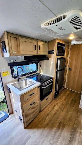 With any Flagstaff E-Pro travel trailer or toy hauler by Forest River, you will experience lightweight towing, style and features that will meet your needs, plus amenities that give you more than you expected! Built with interior and exterior Azdel construction, tongue and grove plywood flooring, and a vacuum laminated roof and walls, plus torsion axle, Rubber-Ryde suspension, and a tire pressure monitoring system for safety while traveling. And the 190-watt roof mount solar panel with 1,000-watt inverter will allow you to stay off-grid if you like. The interior offers a comfortable environment with the choice to use the air conditioner or furnace, and an AM/FM stereo with Bluetooth and USB will allow you to listen to your favorite tunes and keep your cell phone charged. Make your selection today!