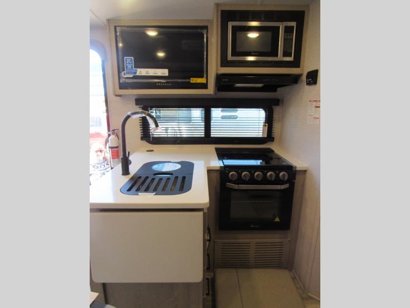 Each Flagstaff Micro Lite travel trailer by Forest River features laminated fiberglass sidewalls, sleek tinted frameless windows, and Azdel composite panels for added strength and support. You can easily tow these travel trailers with an SUV since they are so lightweight, and there is a power tongue jack for quick and easy set up. Some of the convenient amenities you will enjoy are the Teton All-In-One WiFi booster/LTE prep and antenna, the double battery boxes, Key-Alike locks, plus a Maxxair fan with a cover to keep the fresh air moving in your RV. You will love the modern look of the Newport Ash or Autumn Wood cabinetry, plus there are solid wood cabinet doors, solid surface kitchen countertops, and a Showermiser water saving system in the bathroom. Choose a Flagstaff Micro Lite travel trailer and you won't be disappointed!