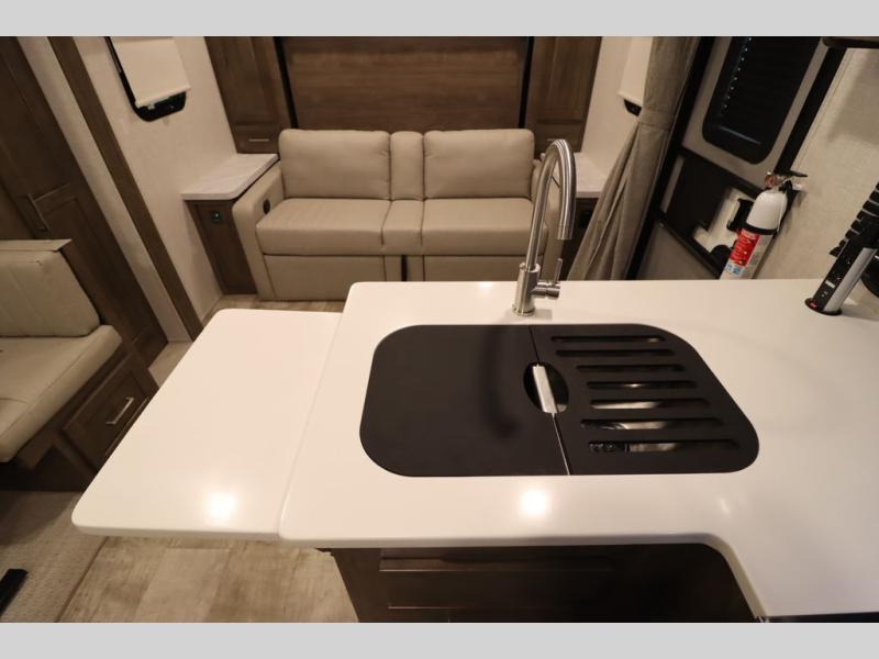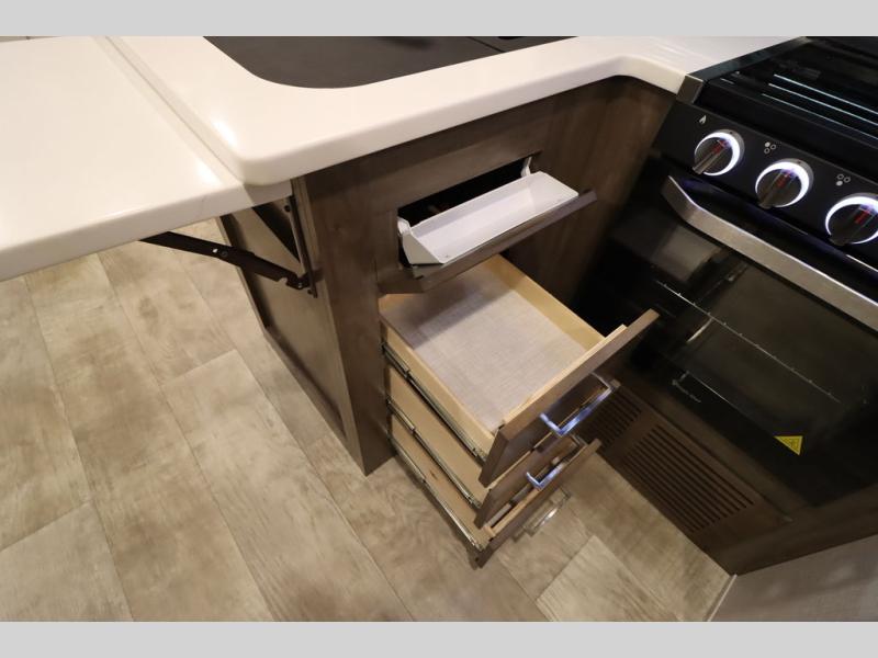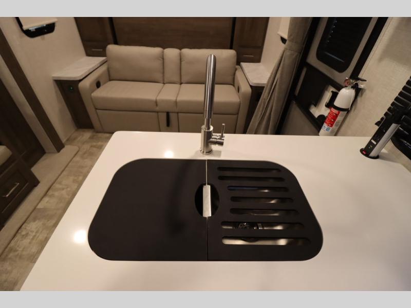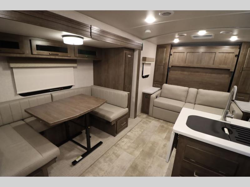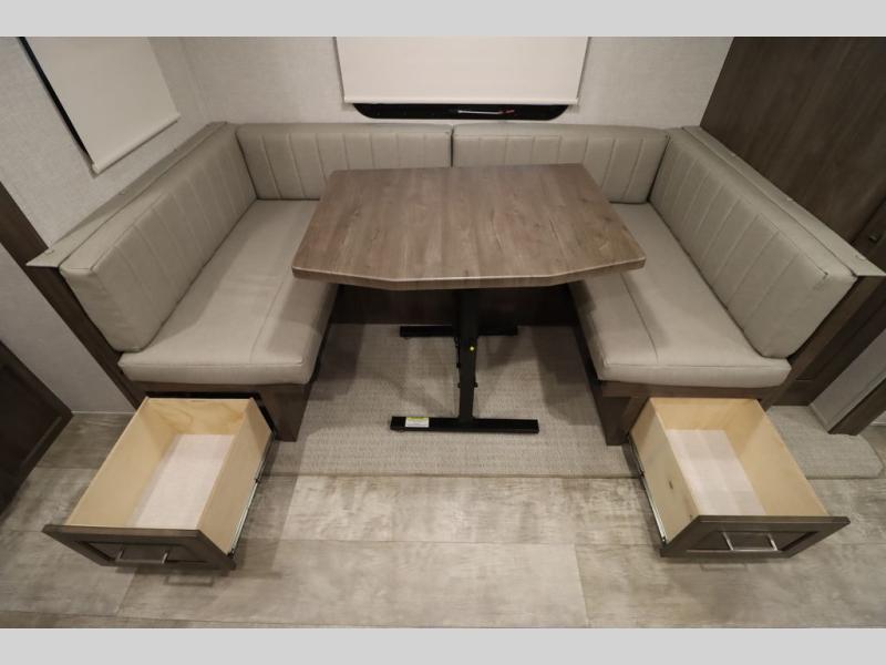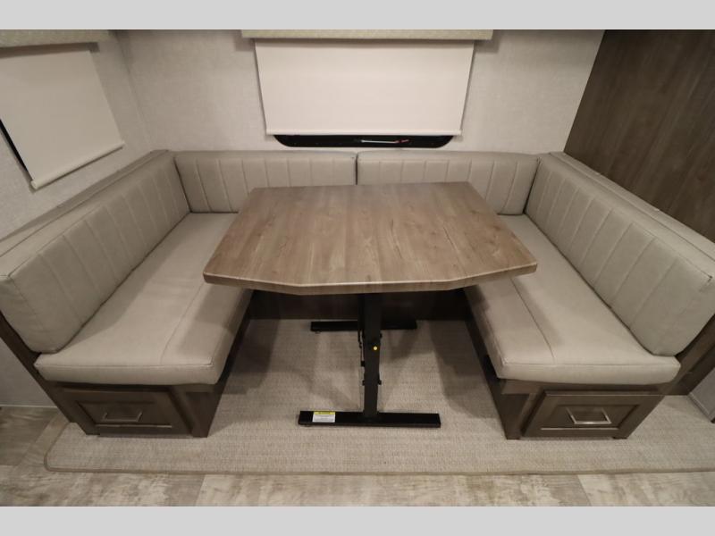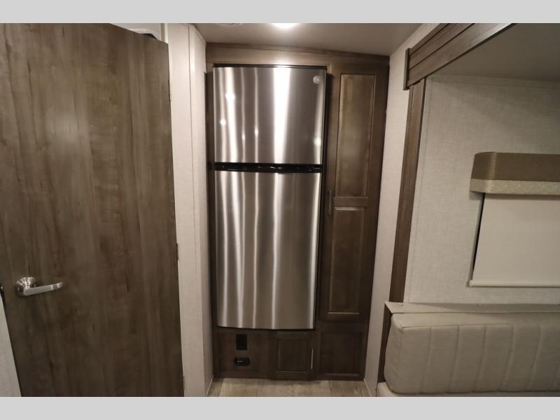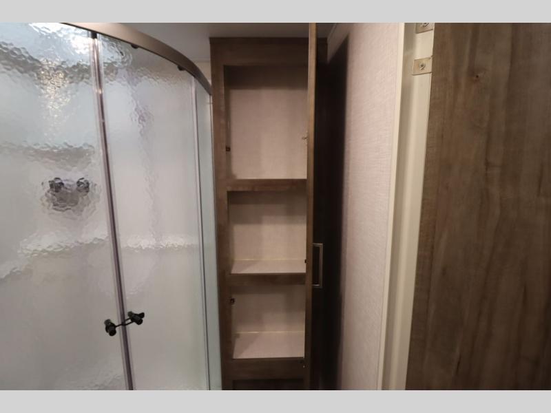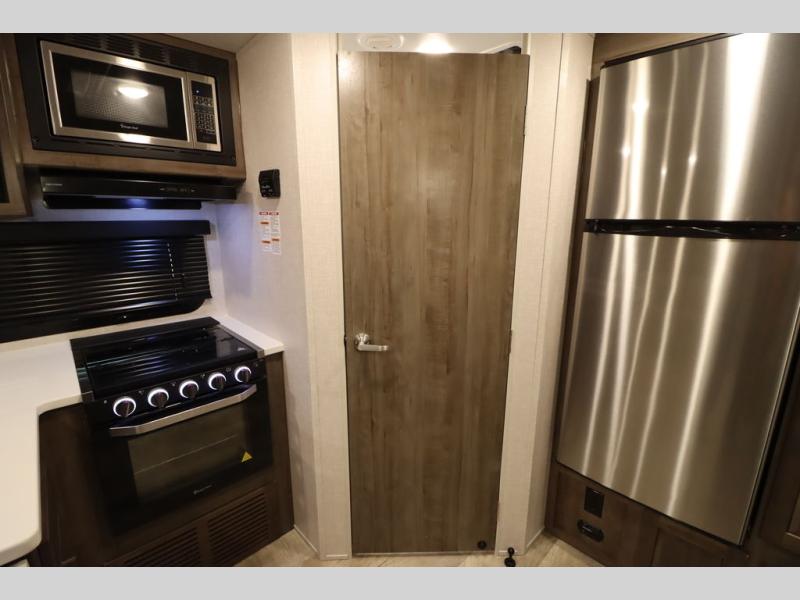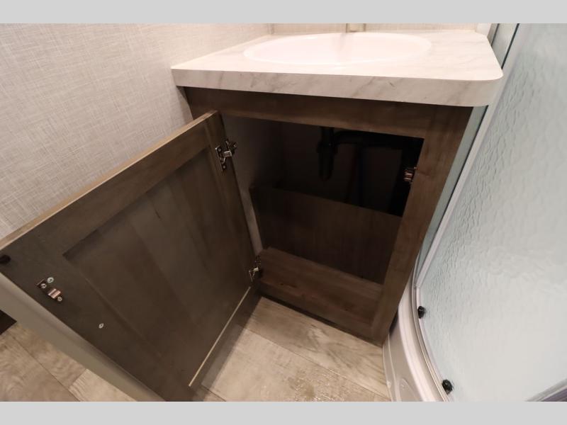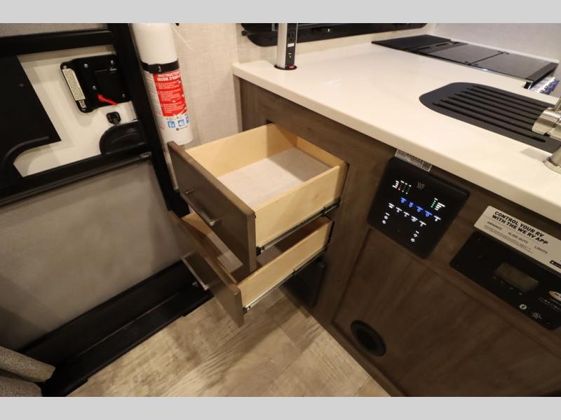 Each Flagstaff Micro Lite travel trailer by Forest River features laminated fiberglass sidewalls, sleek tinted frameless windows, and Azdel composite panels for added strength and support. You can easily tow these travel trailers with an SUV since they are so lightweight, and there is a power tongue jack for quick and easy set up. Some of the convenient amenities you will enjoy are the Teton All-In-One WiFi booster/LTE prep and antenna, the double battery boxes, Key-Alike locks, plus a Maxxair fan with a cover to keep the fresh air moving in your RV. You will love the modern look of the Newport Ash or Autumn Wood cabinetry, plus there are solid wood cabinet doors, solid surface kitchen countertops, and a Showermiser water saving system in the bathroom. Choose a Flagstaff Micro Lite travel trailer and you won't be disappointed!