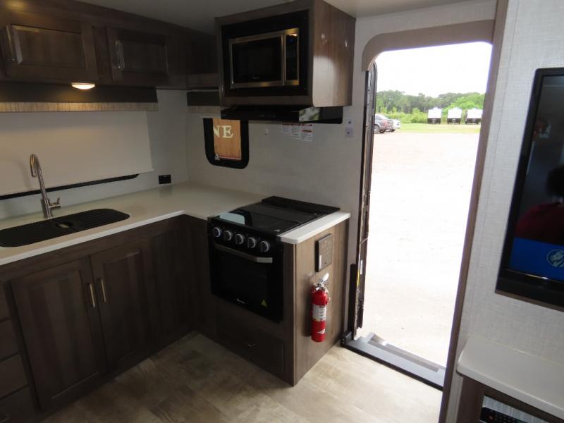 Each Flagstaff Micro Lite travel trailer by Forest River features laminated fiberglass sidewalls, sleek tinted frameless windows, and Azdel composite panels for added strength and support. You can easily tow these travel trailers with an SUV since they are so lightweight, and there is a power tongue jack for quick and easy set up. Some of the convenient amenities you will enjoy are the Teton All-In-One WiFi booster/LTE prep and antenna, the double battery boxes, Key-Alike locks, plus a Maxxair fan with a cover to keep the fresh air moving in your RV. You will love the modern look of the Newport Ash or Autumn Wood cabinetry, plus there are solid wood cabinet doors, solid surface kitchen countertops, and a Showermiser water saving system in the bathroom. Choose a Flagstaff Micro Lite travel trailer and you won't be disappointed!