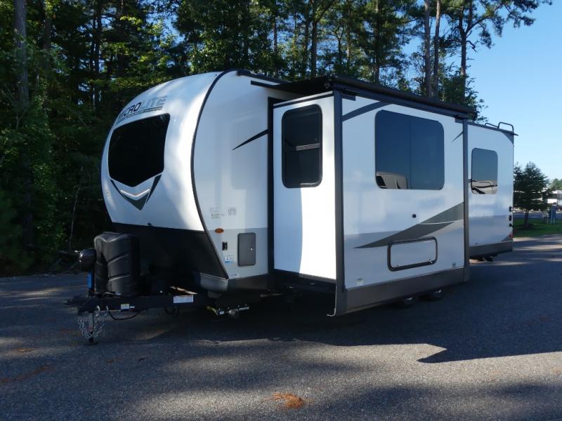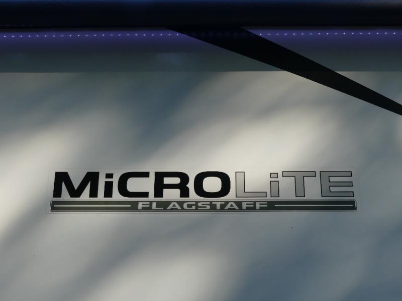 Each Flagstaff Micro Lite travel trailer by Forest River features laminated fiberglass sidewalls, sleek tinted frameless windows, and Azdel composite panels for added strength and support. You can easily tow these travel trailers with an SUV since they are so lightweight, and there is a power tongue jack for quick and easy set up. Some of the convenient amenities you will enjoy are the Teton All-In-One WiFi booster/LTE prep and antenna, the double battery boxes, Key-Alike locks, plus a Maxxair fan with a cover to keep the fresh air moving in your RV. You will love the modern look of the Newport Ash or Autumn Wood cabinetry, plus there are solid wood cabinet doors, solid surface kitchen countertops, and a Showermiser water saving system in the bathroom. Choose a Flagstaff Micro Lite travel trailer and you won't be disappointed!