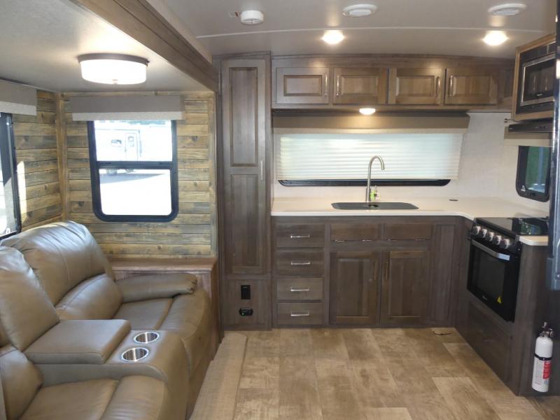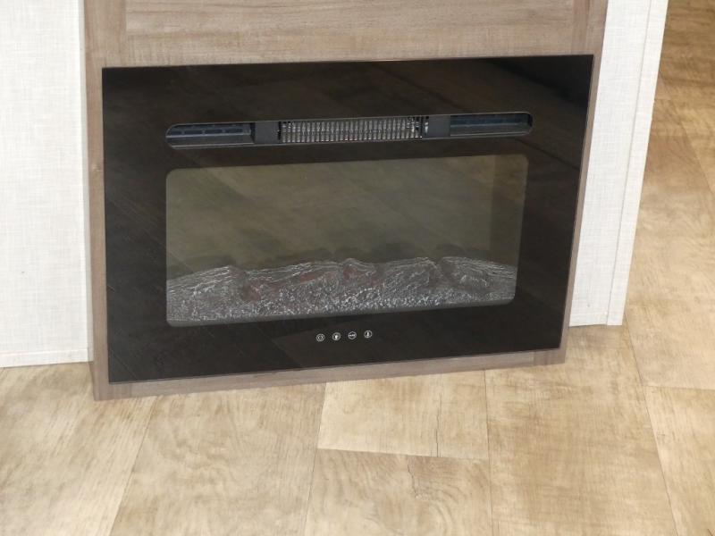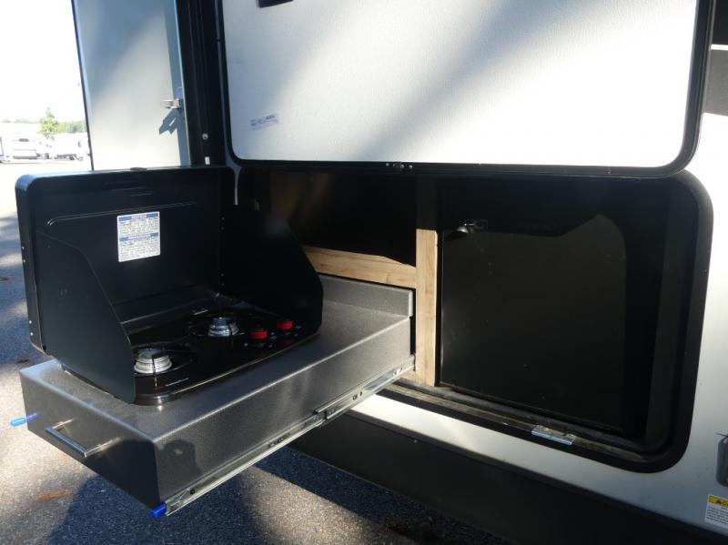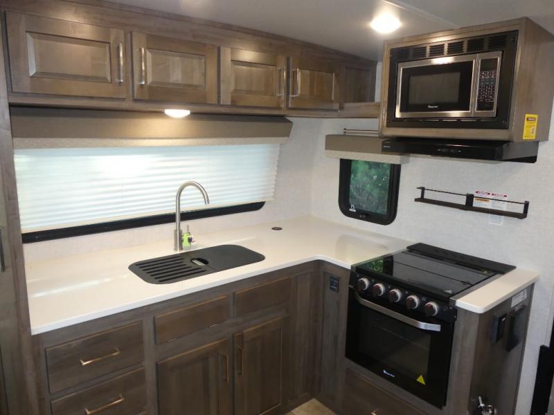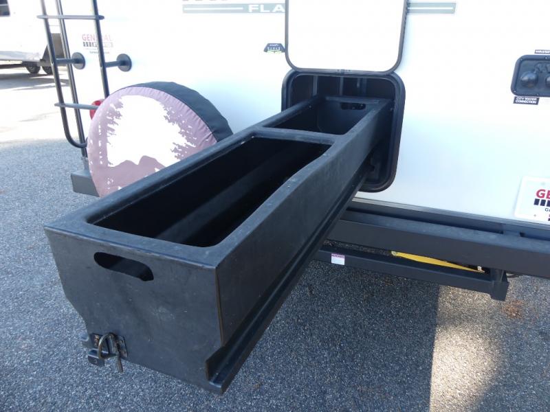 You're going to love this Flagstaff Micro Lite travel trailer with a front kitchen and a rear private bedroom. The single slide with theater seating opens up the living area and provides extra room in the front kitchen to cook your family dinners. You'll appreciate the pantry, as well as the ample counter space to prep your meals. Enjoy your evenings in front of the fireplace, or turn on the LED TV to make it a movie night with popcorn and snacks. This model also includes an outside kitchen for breakfast outside!