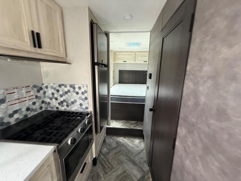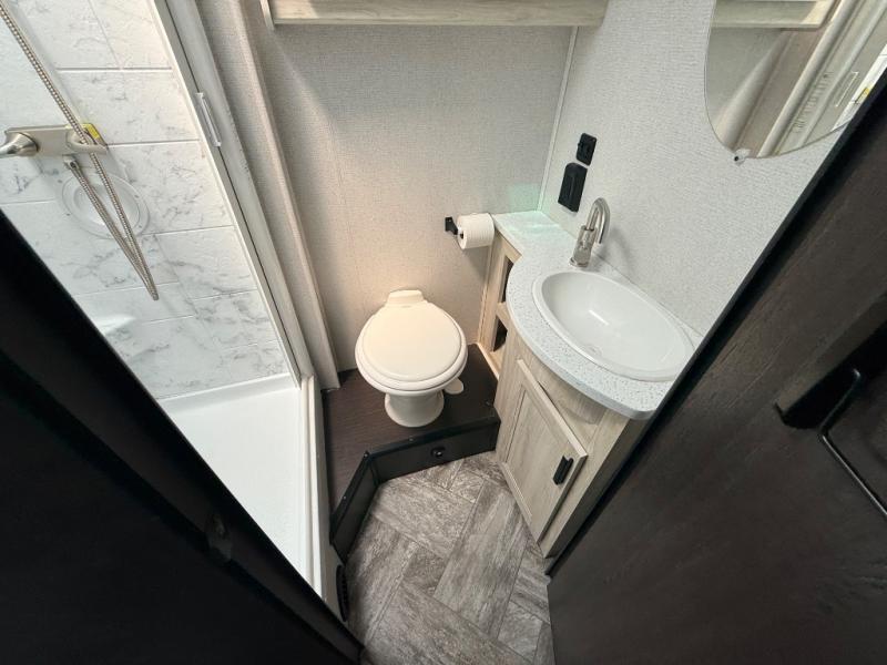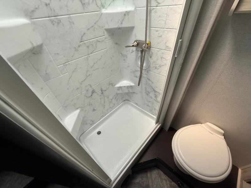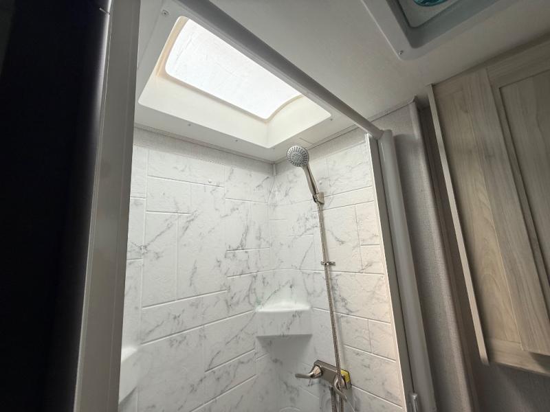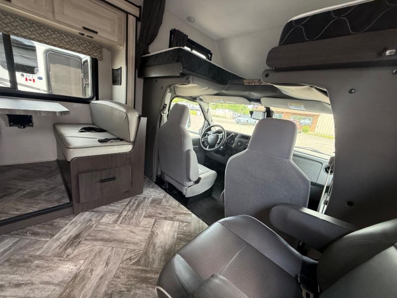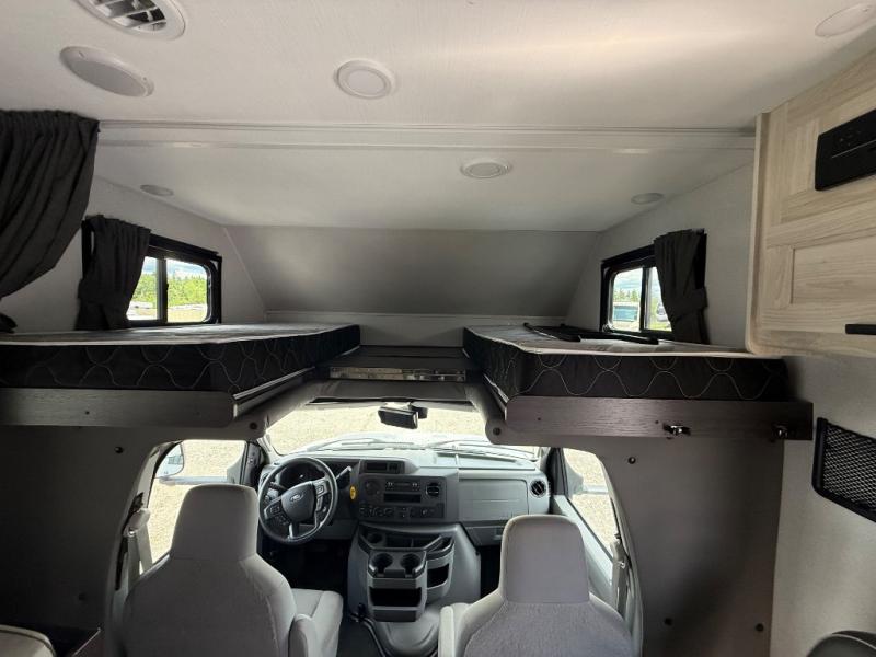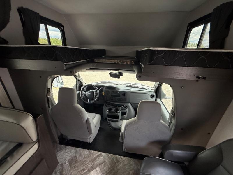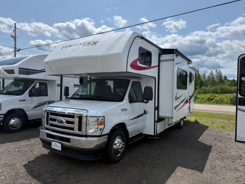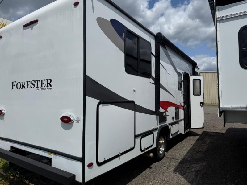 With any Forester LE Class C gas motorhome by Forest River, you will enjoy premier features such as the color back-up camera/side view cameras with a rear view mirror monitor, the Winegard Air 360+ digital antenna, and the 15,000 BTU ceiling ducted, ultra quiet roof air with a heat pump when traveling during the warmer months. The exterior includes aluminum framed laminated sidewalls, gel coat exterior fiberglass, a one-piece fiberglass front cap, and slide room toppers. Some of the interior top features are the Maxx Air multi-speed power fan with a cover in the kitchen, the overhead bunk ladder, the high pressure oxygen infused shower head, and the blackout roller shades for a good night's sleep. Make your selection today!