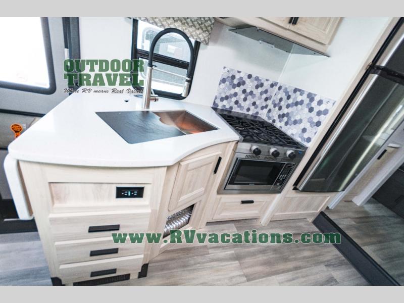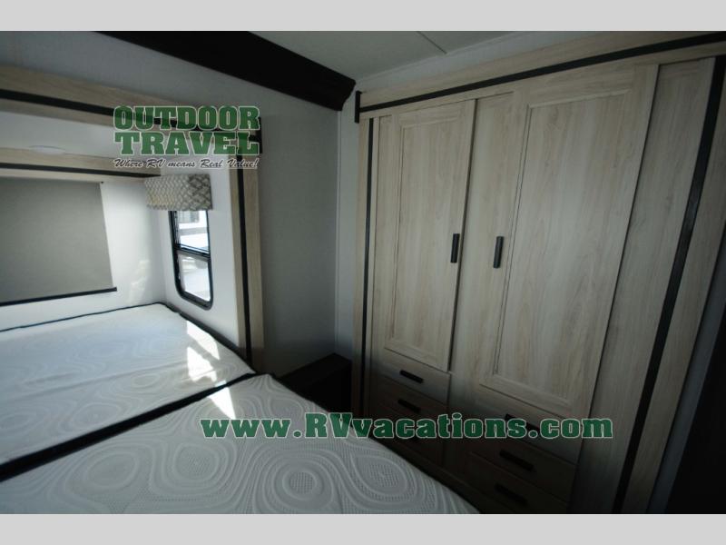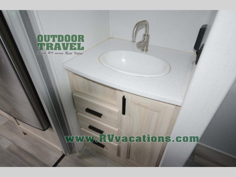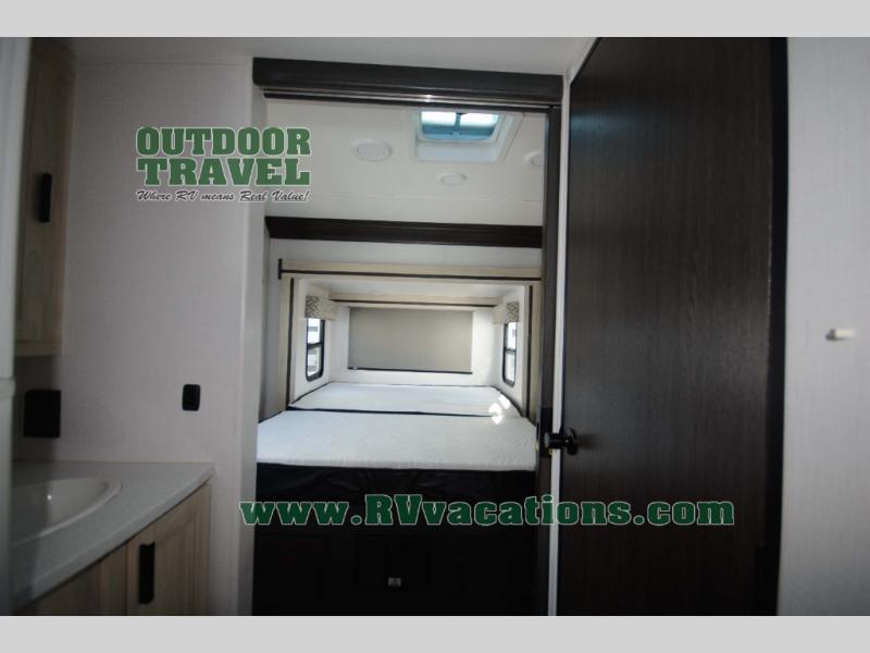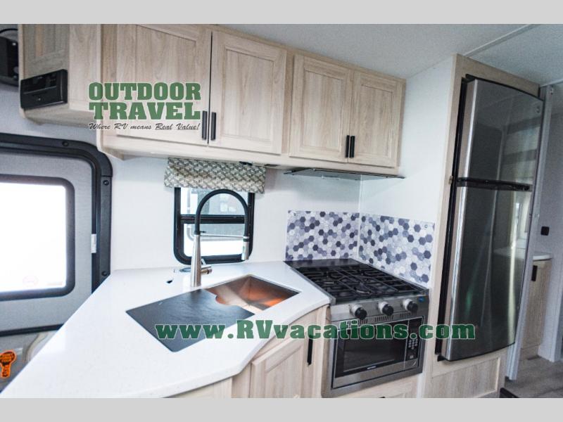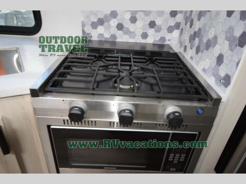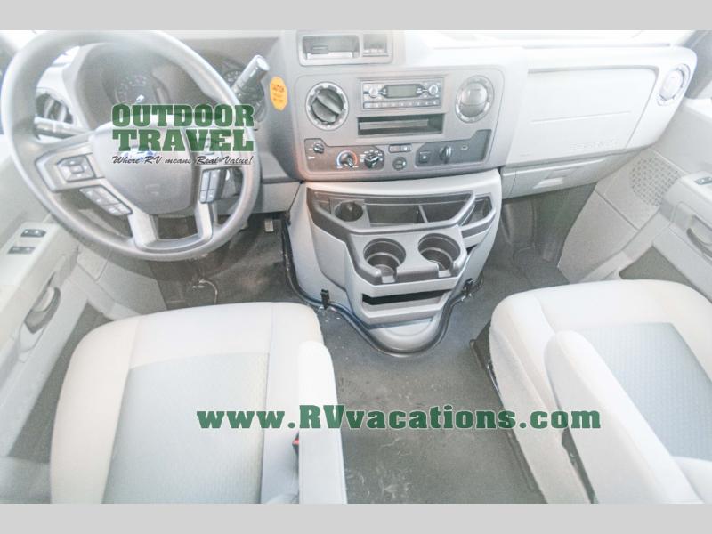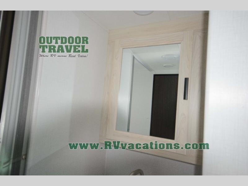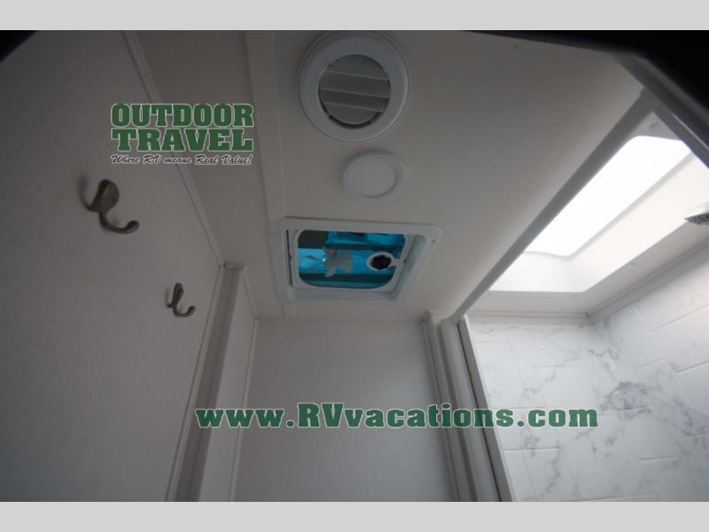 This motorhome has everything you will need for a fun and comfortable road trip! The rear private bedroom has a queen bed slide, a 12V TV, and a wardrobe to keep your clothes looking nice. Plus, it leads into the separated bathroom which has a private shower and a toilet across from a sink with a medicine cabinet. The 10.7 cu. ft. 12V refrigerator is big enough to store your perishables, the flip-up countertop will make meal prepping easier, and the three burner cooktop is just waiting for you to fry up some bacon. Enjoy all of your meals and game nights at the U-shaped dinette slide then transform it into an extra sleeping space if needed. Speaking of sleeping spaces, the 60" x 80" bunk over cab mat is a comfortable place for one to sleep or you can switch it out for an optional Trekker cap with a built-in entertainment center. You can even choose to add an optional outside 12V TV!