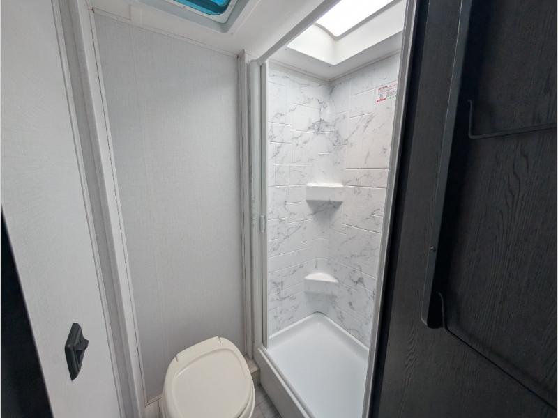 With any Forester Classic Class C gas motorhome by Forest River you will enjoy comfort at every turn! They offer a smooth ride with the EZ Ryde premium suspension system, and the ultra leather captain's seats will ensure comfort wherever you go. There are heated, enclosed holding tanks and valves plus block foam insulation to enjoy four-seasons camping, and the gel coat exterior fiberglass is slick and easy to keep clean. A keyless entry comes standard for your convenience, along with a color back-up camera and side view cameras for added safety when parking. The Forester Classic motorhomes also include a Maxx Air multi-speed power fan with a cover, a shower skylight, a cordless 12V charging plate, plus black out roller shades for privacy any time.