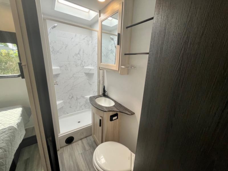 With any Forester LE Class C gas motorhome by Forest River, you will enjoy premier features such as the color back-up camera/side view cameras with a rear view mirror monitor, the Winegard Air 360+ digital antenna, and the 15,000 BTU ceiling ducted, ultra quiet roof air with a heat pump when traveling during the warmer months. The exterior includes aluminum framed laminated sidewalls, gel coat exterior fiberglass, a one-piece fiberglass front cap, and slide room toppers. Some of the interior top features are the Maxx Air multi-speed power fan with a cover in the kitchen, the overhead bunk ladder, the high pressure oxygen infused shower head, and the blackout roller shades for a good night's sleep. Make your selection today!