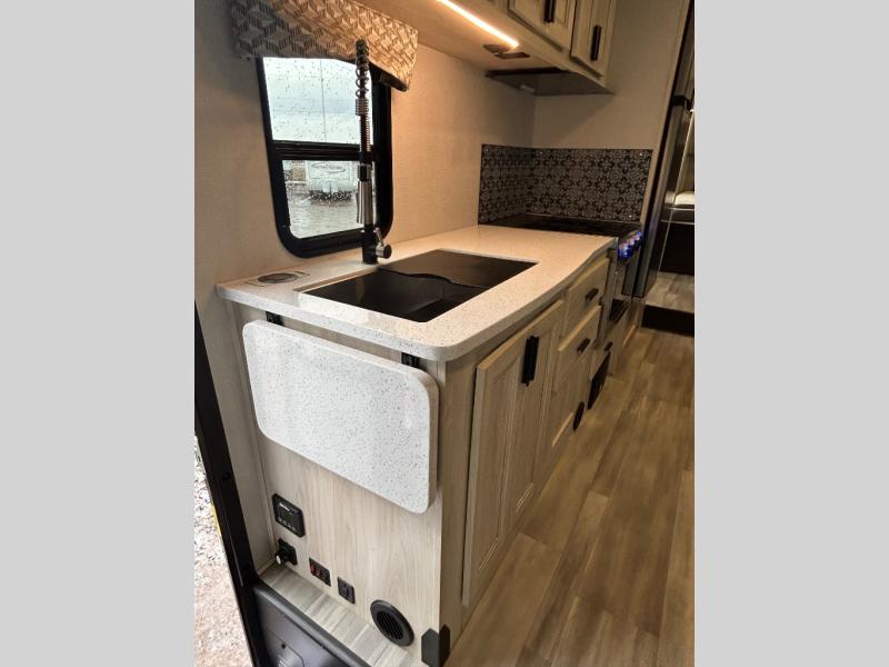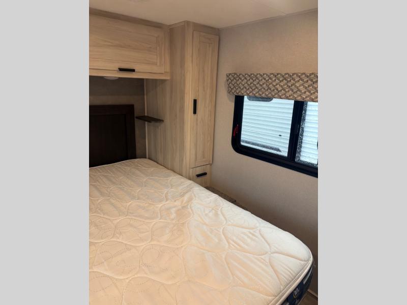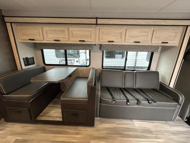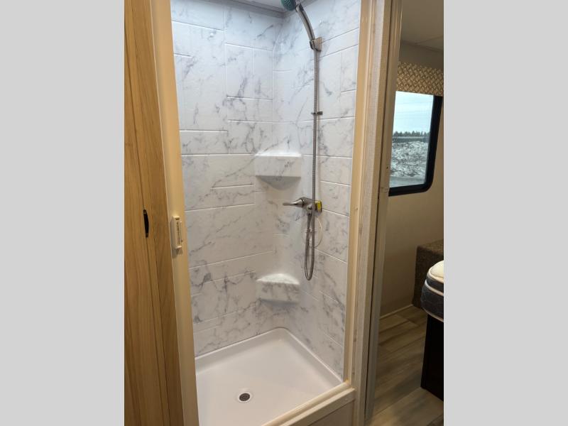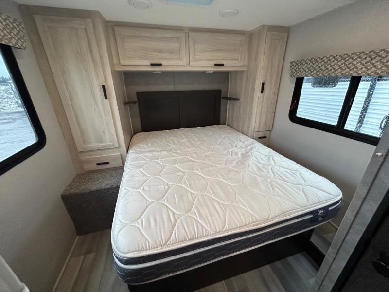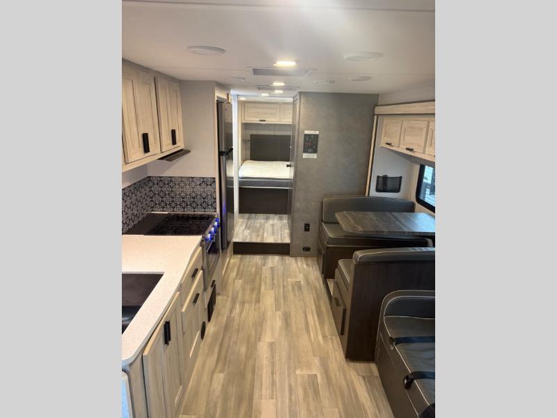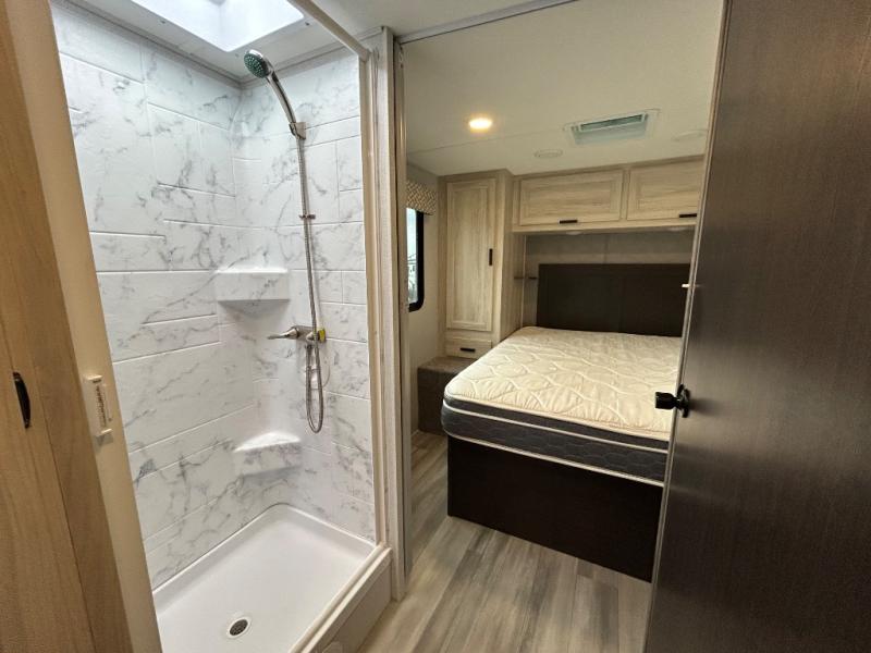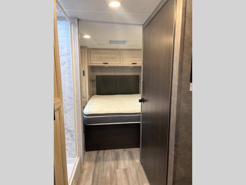With any Forester LE Class C gas motorhome by Forest River, you will enjoy premier features such as the color back-up camera/side view cameras with a rear view mirror monitor, the Winegard Air 360+ digital antenna, and the 15,000 BTU ceiling ducted, ultra quiet roof air with a heat pump when traveling during the warmer months. The exterior includes aluminum framed laminated sidewalls, gel coat exterior fiberglass, a one-piece fiberglass front cap, and slide room toppers. Some of the interior top features are the Maxx Air multi-speed power fan with a cover in the kitchen, the overhead bunk ladder, the high pressure oxygen infused shower head, and the blackout roller shades for a good night's sleep. Make your selection today!