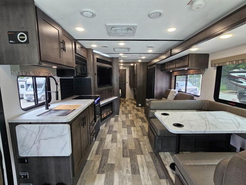 This FR3 Class A gas motorhome is the perfect blend of comfort and functionality, offering a spacious layout, residential amenities, and premium entertainment features. With the bath and a half design, king-size bed, and versatile seating, it’s ideal for both couples and families who want to travel in style. Whether you’re watching the game outside, enjoying the warmth of the fireplace, or relaxing in the master suite, the FR3 34DS delivers a true home-on-wheels experience.