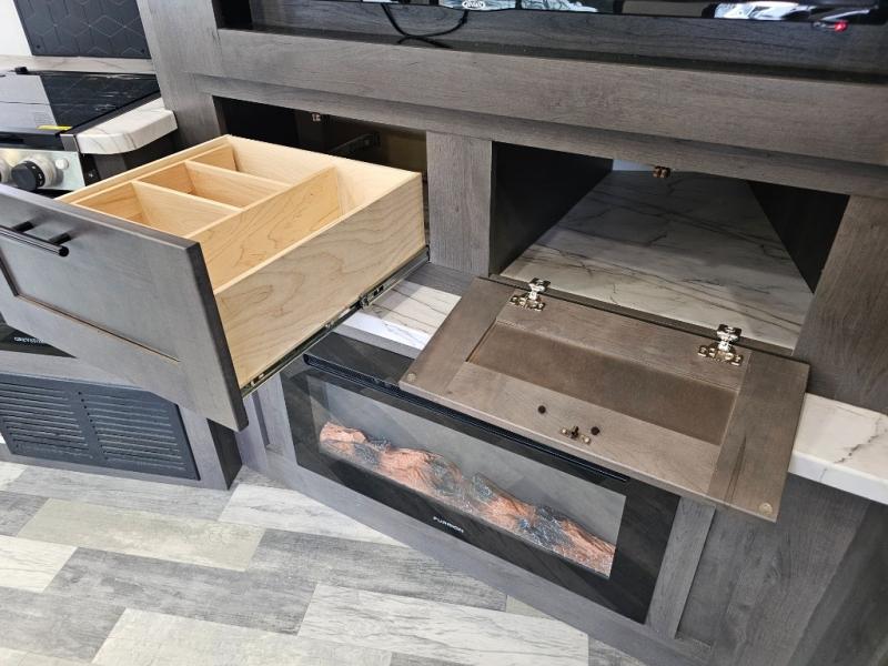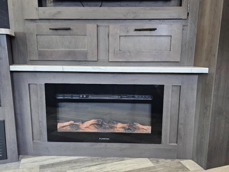 Fireplace below the 40" LED 12V TV for cozy evenings