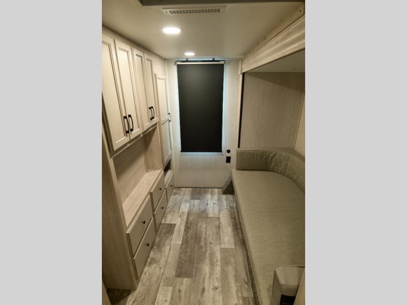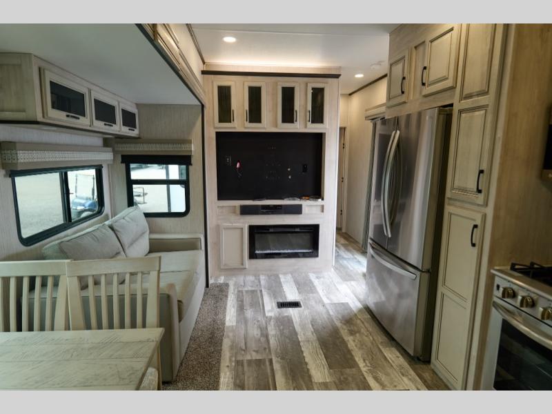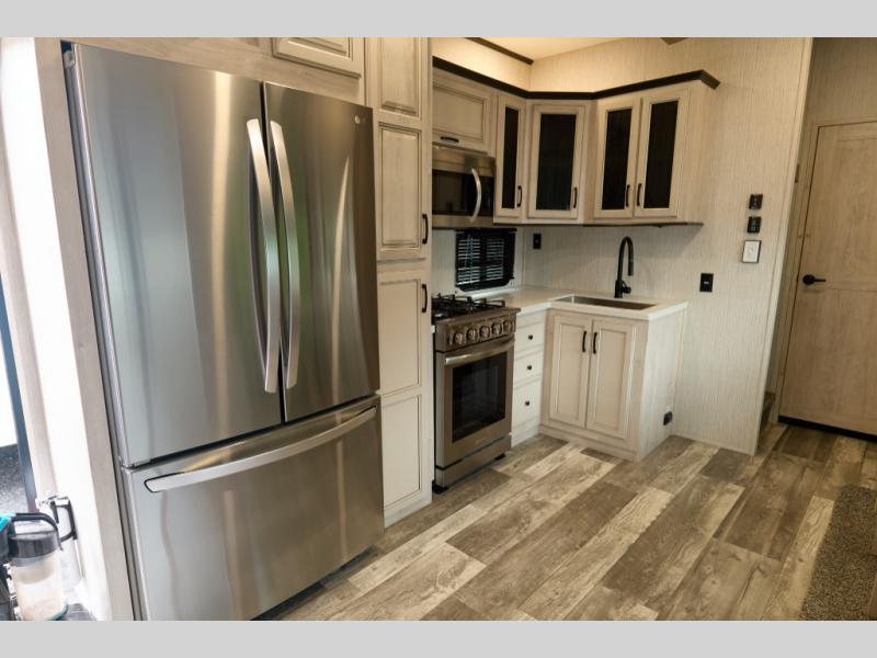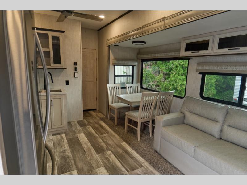 With each Sierra Destination Trailer by Forest River you will enjoy many luxurious features, such as crown molding over the kitchen cabinets, solid surface kitchen countertops, a memory foam mattress, plus so much more. The extra large picture windows throughout let natural light in and provide beautiful outdoor views, and each model includes three or more slides for added interior space. You'll find many exterior conveniences, like the porch light with an interior switch, the rain gutters with extra long drip spouts to prevent black streaking, and an electric awning with LED light strip, plus more! You will stay comfortable year around with a 15,000 A/C unit and the high-efficiency radiant foil in the roof and floor, plus each model is constructed with an Underbelly Armor for better insulation!