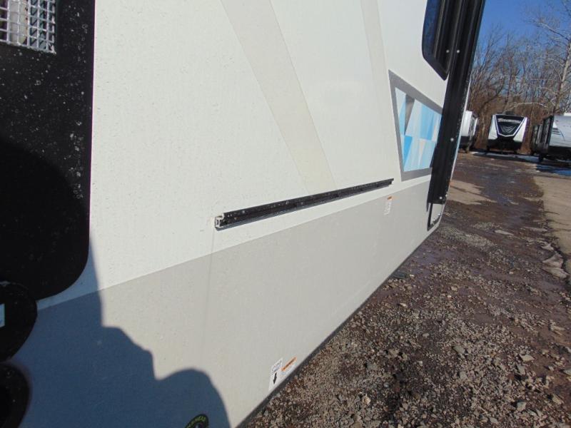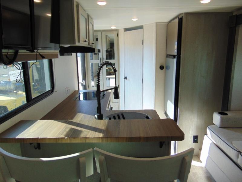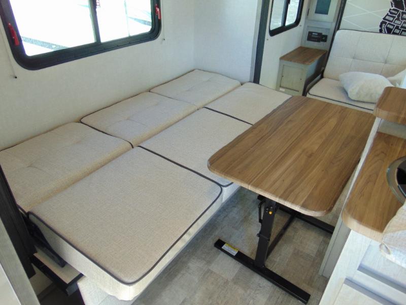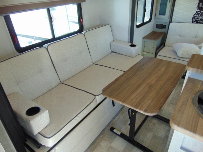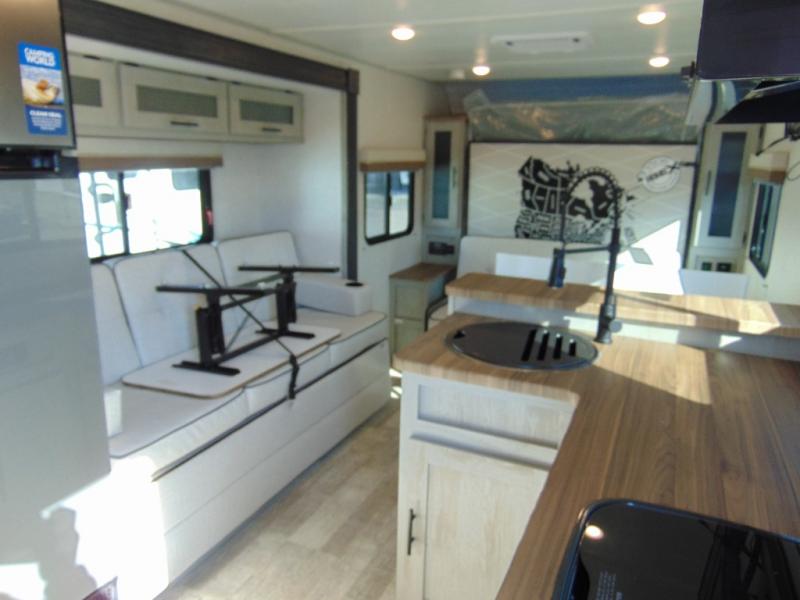 With any IBEX travel trailer or toy hauler by Forest River, the interior offers stainless steel appliances for style, seamless countertops for durability and easy care, and a largest-in-class refrigerator for more cold storage. The Azdel construction and PVC roof will help extend the life of your unit, and the all terrain tires and increased ground clearance means you can go more places. A JBL wireless Bluetooth audio system also comes standard so you can listen to your favorite tunes, along with Rhino-Rack RTV tracks to keep your gear secure!