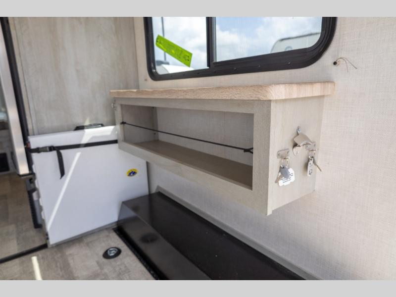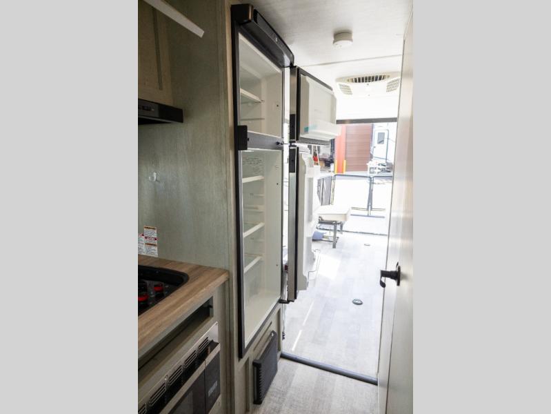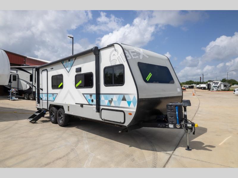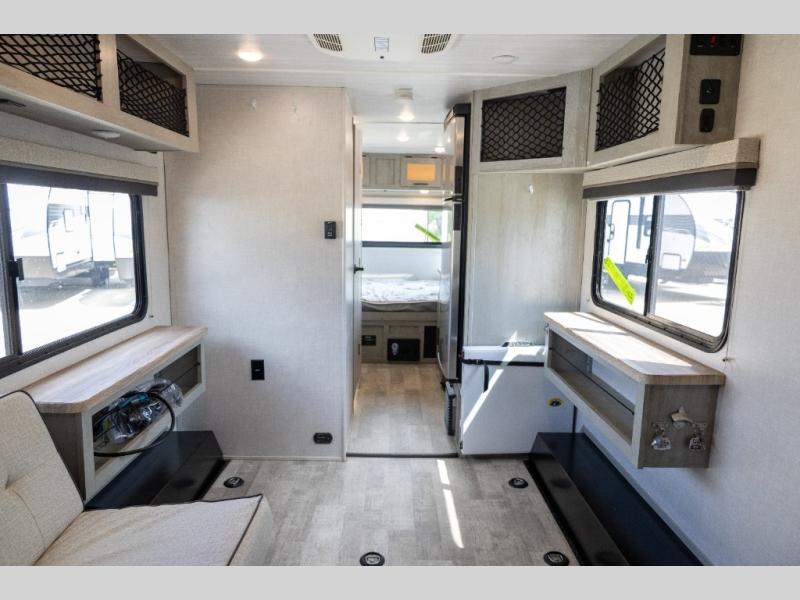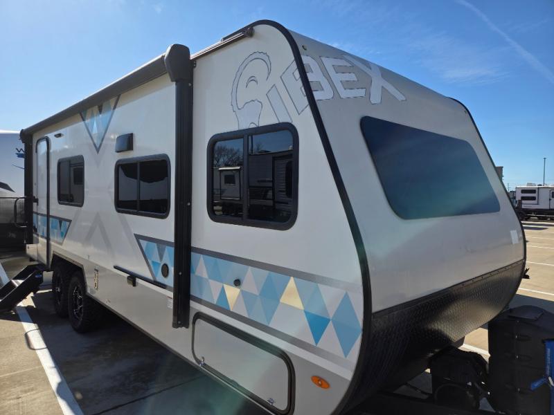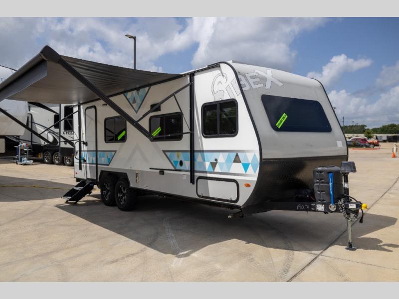 With any IBEX travel trailer or toy hauler by Forest River, the interior offers stainless steel appliances for style, seamless countertops for durability and easy care, and a largest-in-class refrigerator for more cold storage. The Azdel construction and PVC roof will help extend the life of your unit, and the all terrain tires and increased ground clearance means you can go more places. A JBL wireless Bluetooth audio system also comes standard so you can listen to your favorite tunes, along with Rhino-Rack RTV tracks to keep your gear secure!