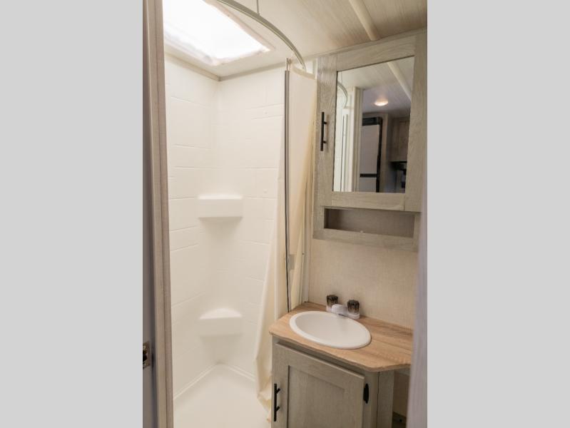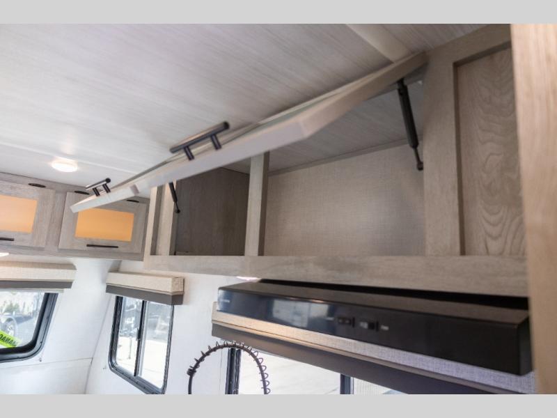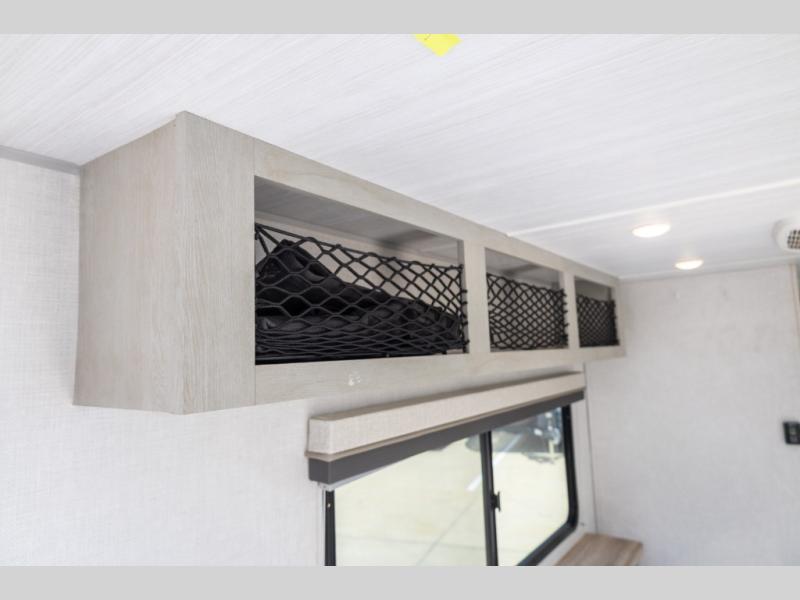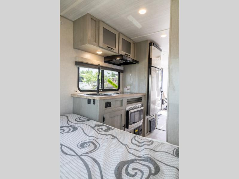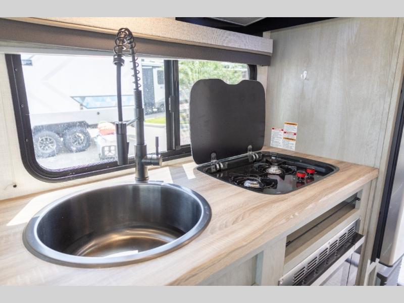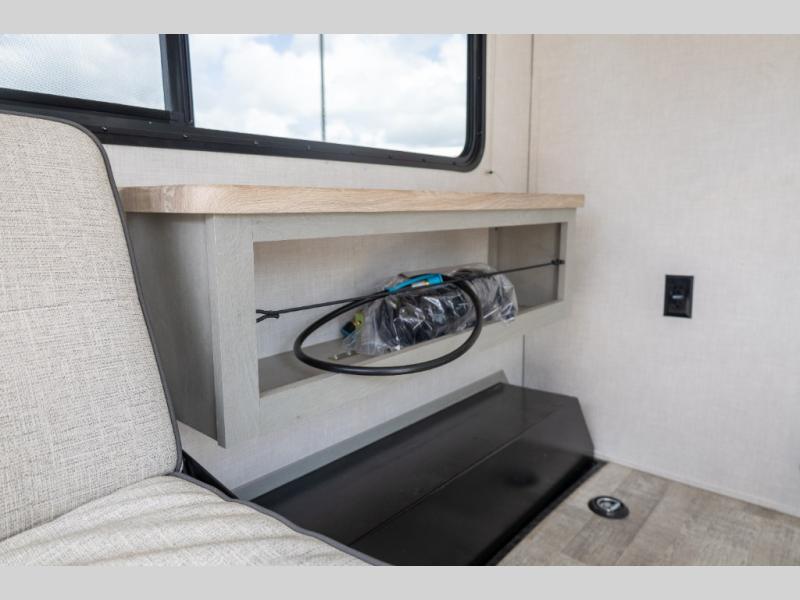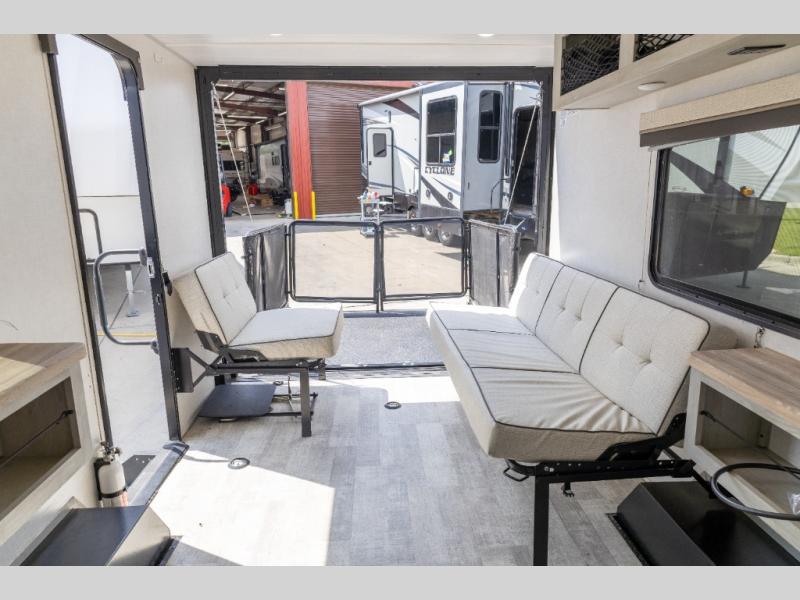 With any IBEX travel trailer or toy hauler by Forest River, the interior offers stainless steel appliances for style, seamless countertops for durability and easy care, and a largest-in-class refrigerator for more cold storage. The Azdel construction and PVC roof will help extend the life of your unit, and the all terrain tires and increased ground clearance means you can go more places. A JBL wireless Bluetooth audio system also comes standard so you can listen to your favorite tunes, along with Rhino-Rack RTV tracks to keep your gear secure!